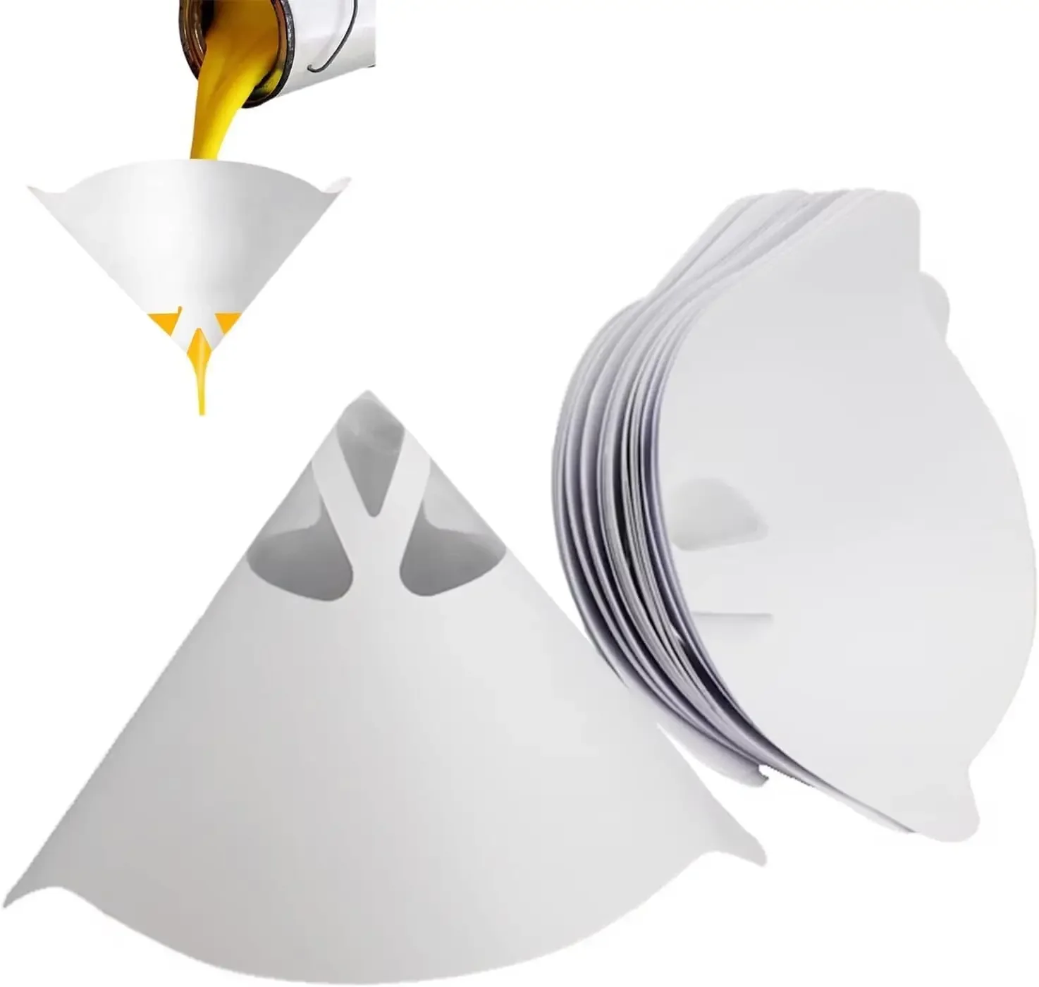 Experience effortless paint filtration with this set of disposable filters designed for automotive, spray painting, woodworking, and machinery use. Crafted with high-quality nylon mesh and paper, these filters efficiently trap fine impurities, ensuring a smooth, flawless finish every time. Their conical white design is sleek, minimalistic, and lightweight, making them easy to handle and replace without hassle. With a size of 10x15cm and a 100-micron mesh, each filter maintains perfect clarity, preventing debris from contaminating your liquids. Whether you're working on a small project or large-scale application, these filters provide exceptional performance, durability, and ease of use, helping you achieve professional results while simplifying your workflow.