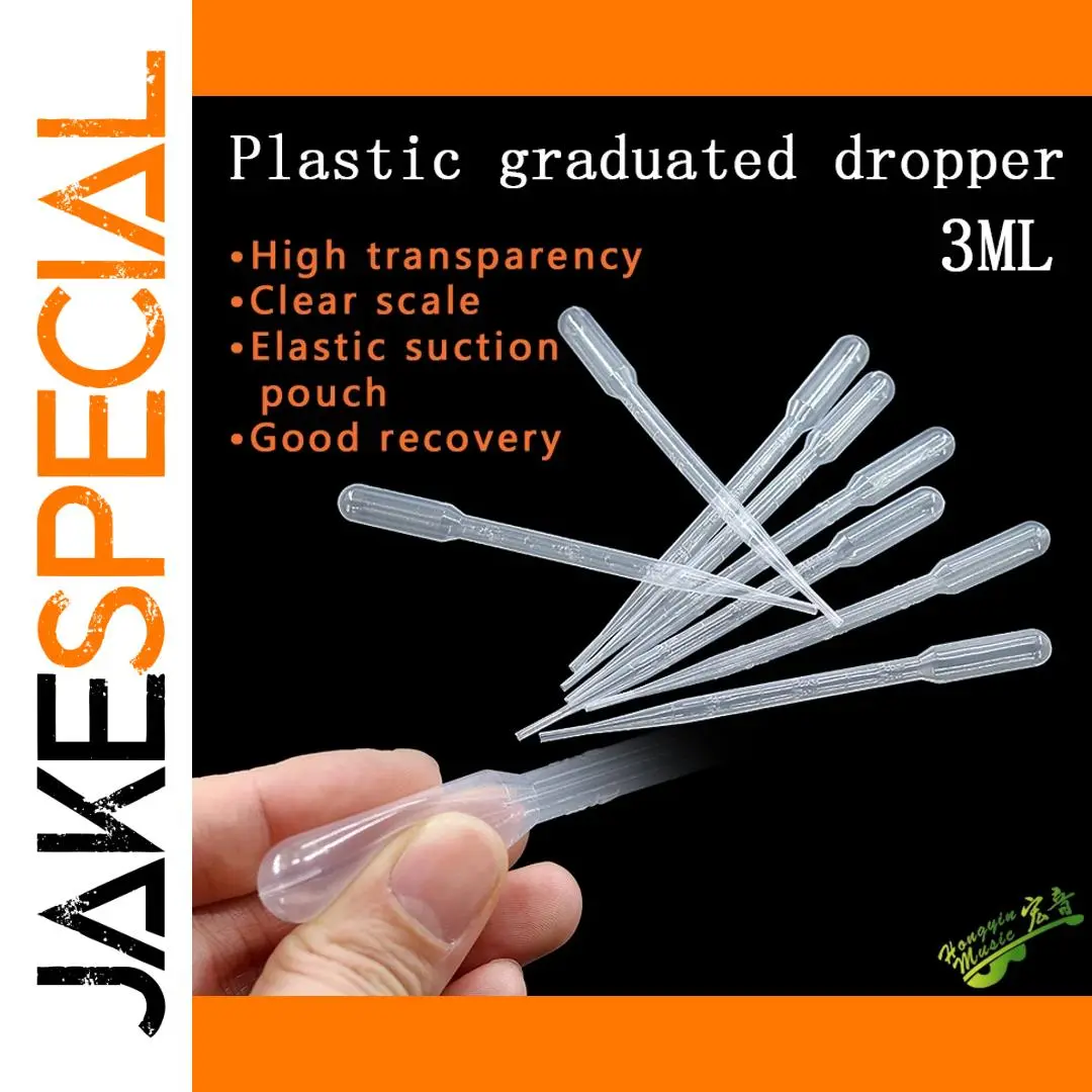 Experience precise liquid handling with this set of ten disposable plastic droppers, each approximately 155mm long. Crafted from clear, sterile plastic, these droppers feature graduated hoses capable of holding up to 3ml, perfect for scientific, medical, or cosmetic use. Their slim, tapered design with pointed tips allows for accurate and controlled dispensing of liquids. The faint measurement markings enhance precision without cluttering the clean, minimalist look. Easy to use and designed for single use, these droppers ensure hygiene and reduce contamination risk. Their versatility makes them ideal for applications requiring small volume measurements, such as in laboratories, beauty treatments, or medical procedures. This set provides excellent value and convenience, combining professionalism with practicality for any fluid transfer needs.