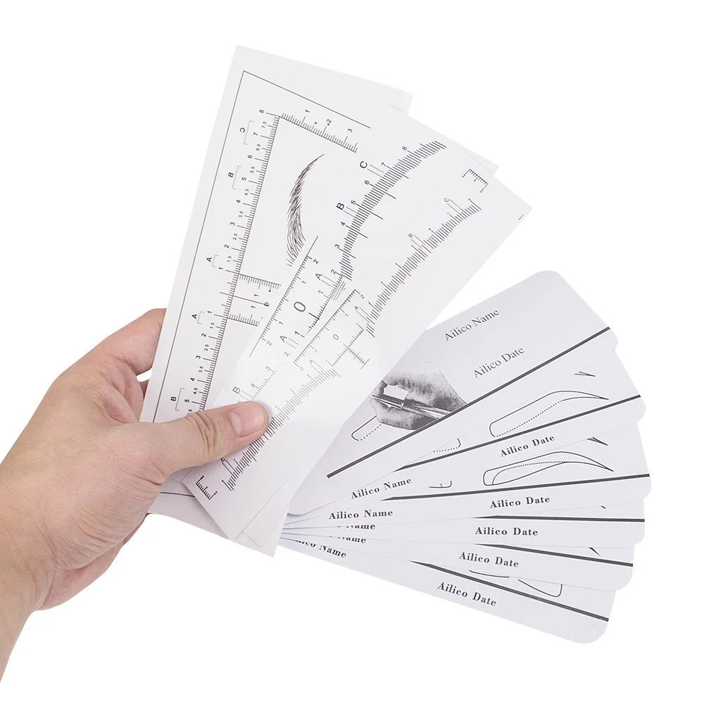 Achieve perfect, symmetrical eyebrows with this disposable, transparent plastic ruler sticker guide, featuring precise measurement markings and a golden ratio design suitable for all face shapes. Equipped with a strong adhesive that secures during use and peels off cleanly without residue, it enhances brow mapping efficiency by approximately 50%. Compatible with bulk packs of 10, 20, or 50 pieces, this hygienic tool is ideal for professional microblading, tattooing, and permanent makeup applications. Its durable, chemical-free construction ensures a clean, safe, and precise experience, making it a reliable addition to any salon or advanced practitioner’s toolkit.