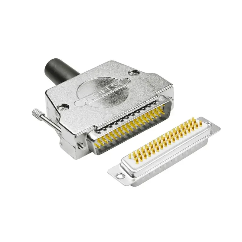 - Industrial-grade DB50 connector with a polished, silver-colored metal shell, offering a sleek, durable, and corrosion-resistant construction perfect for demanding environments.