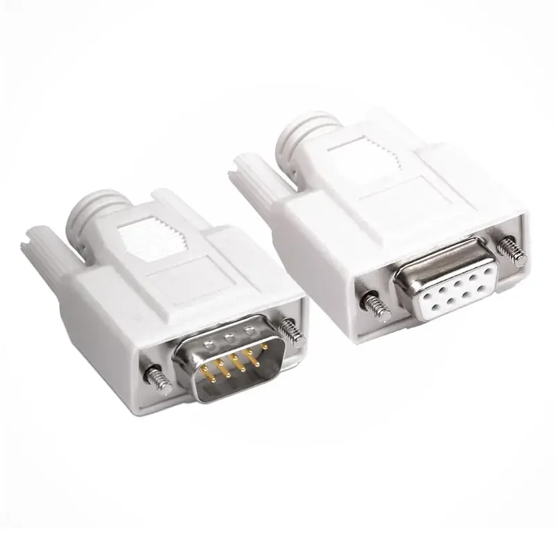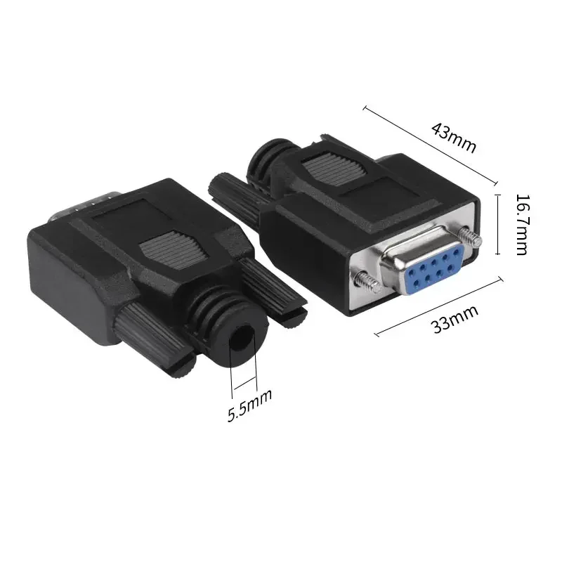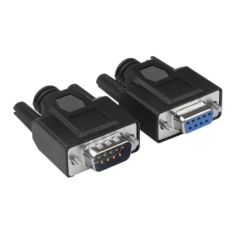 This durable and practical DB9 serial connector set features both male and female heads with a sleek, industrial design. Crafted from tough black plastic casings complemented by polished silver metal shells, the connectors offer a professional appearance suitable for technical setups. Gold-plated pins add a touch of elegance and enhance electrical conductivity, while the soldering shell and removable clamps facilitate precise assembly and secure wiring. The product’s compact, rectangular shape with rounded edges ensures ease of handling and installation in various environments. Designed for DIY projects, these connectors support multiple communication standards—RS-232, RS-485, and RS-422—making them versatile and reliable for industrial and communication applications. The inclusion of matching mounting plates promotes easy, stable installation.