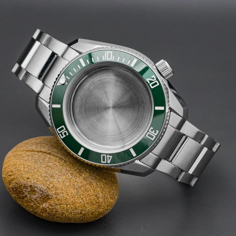 Experience the perfect blend of durability and style with this high-quality stainless steel diver watch case, designed for ultimate performance and elegance. Crafted from solid 316L stainless steel, it features a 42mm diameter and 13mm thickness, providing a substantial yet sleek profile. Its brushed and polished finish creates a sophisticated look, while the sapphire crystal glass offers a clear, scratch-resistant cover. The dual-tone aluminum bezel insert in deep green with white markings adds a vibrant, functional accent. The case is fully sealed and water-resistant up to 200 meters, making it suitable for serious diving. Designed to house popular automatic movements like NH35 and NH36, this case guarantees precise function and reliable performance. Ideal for customizing your professional dive watch.
