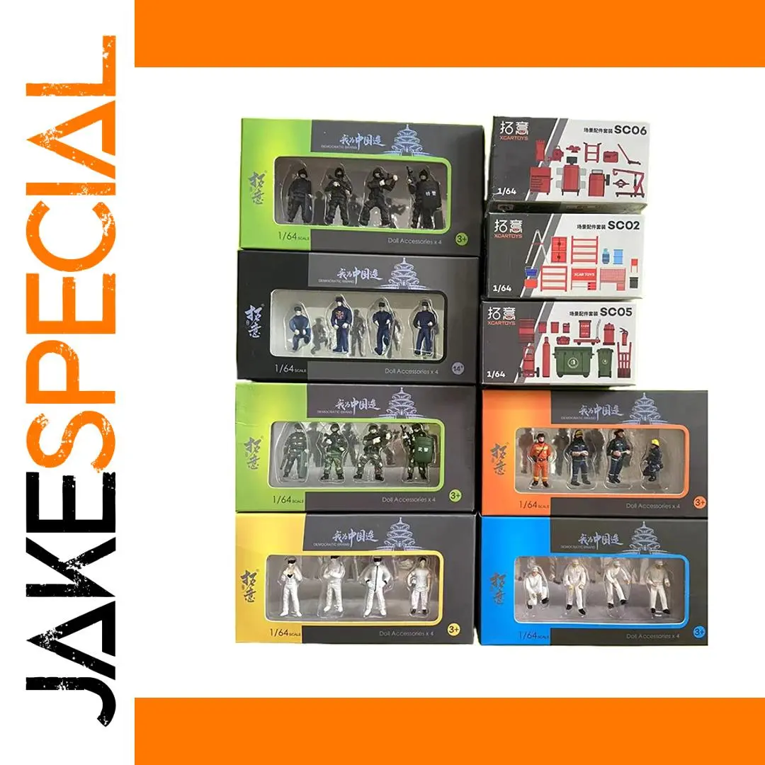 - Includes four figures representing occupations like SWAT, fireman, police, repairman, and racing driver; vividly colored with detailed uniforms and accessories showcasing authentic attire.