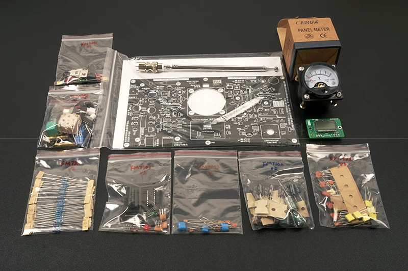 Imagine owning a sleek, high-performance FM stereo radio that combines vintage charm with modern precision. This this DIY FM Stereo Radio Circuit Board features a compact black rectangular design measuring 194mm by 96mm, adorned with colorful components including yellow, blue, and red capacitors, along with sleek switches and a large black control knob. The centerpiece includes a vintage-style analog signal meter with a white face and black markings, offering a nostalgic touch, complemented by a modern digital frequency display for easy tuning. Thanks to its high sensitivity mid-amp chip, this board allows you to receive many stations without an external antenna, offering stand-alone functionality. Its industrial antenna rod extends above, ready to pick up FM signals effectively.