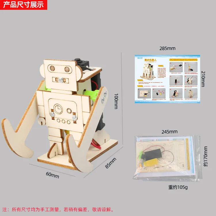 Experience hands-on learning with this DIY walking robot, a small STEM-focused puzzle toy designed for children aged 3 to over 14 years. Crafted from educational materials, it features a minimalist, handcrafted wooden design with smooth, light-colored surfaces, engraved facial features, and geometric shapes. The robotic figure, dubbed “Roving robot,” showcases a humanoid form with a rectangular head, detailed control panel engravings, and modular limbs connected by visible screws, highlighting its functional, industrial aesthetic. Internal wires and mechanical components suggest movement capabilities, making it an ideal interactive project to inspire curiosity, creativity, and technological understanding in learners.