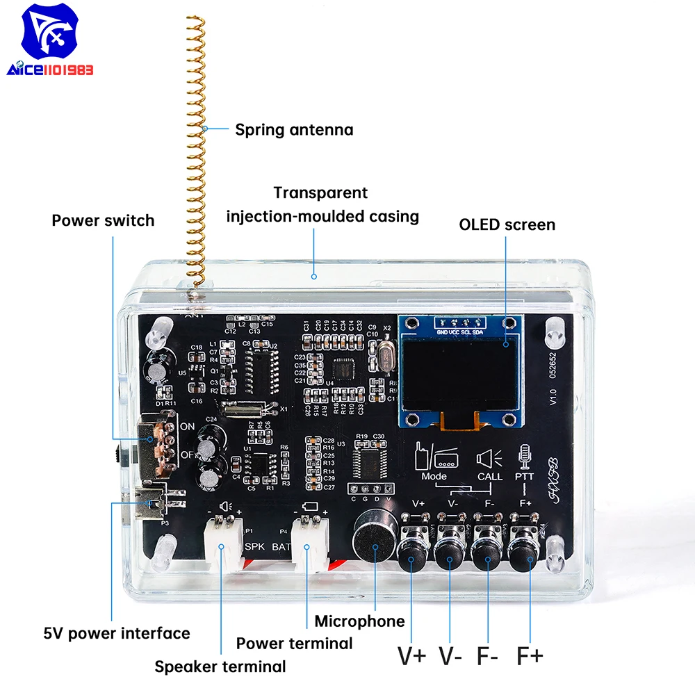- Equipped with RDA5807 radio chip for enhanced noise cancellation, bass boost, and high-sensitivity reception, coupled with BK4802P RF transceiver chip for stable signal and anti-interference.