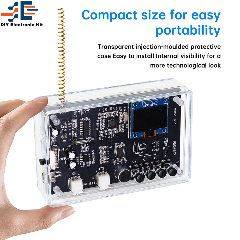 Imagine creating your own reliable intercom and FM radio device with ease. This high-quality DIY kit features a transparent plastic enclosure, showcasing a well-organized PCB measuring 95.5mm by 61mm. The integrated 0.96-inch OLED display delivers crisp visuals, displaying signal strength, station info, and device status. Equipped with advanced chips—RDA5807 for clear, high-sensitivity radio reception and BK4802P for robust signal processing—this kit ensures low noise, bass enhancement, and excellent anti-interference ability. Designed for enthusiasts, it offers a seamless assembly experience, with surface-mount components pre-soldered and only requiring manual soldering for easy insertion parts. Whether for educational, recreational, or practical use, this kit nurtures your hands-on skills while providing dependable wireless communication capabilities.