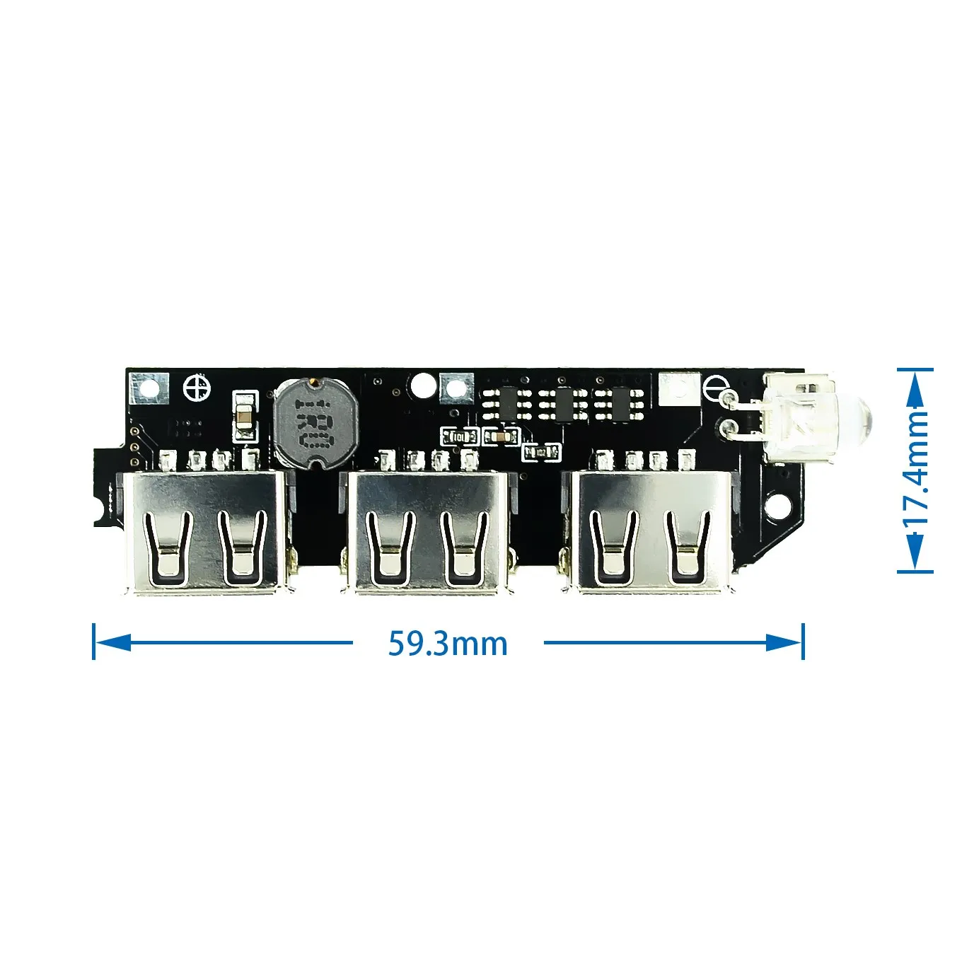 - This circuit board features three USB Type-A outputs housed in metallic casings with visible gold contacts, ensuring excellent electrical connection and durability for multiple device charging.