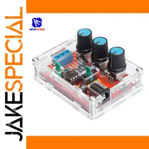 Experience the joy of building your own signal generator with this sleek, transparent acrylic DIY kit. Its minimalist design showcases vibrant internal components, including a bright blue terminal block and a vivid red PCB, creating a striking visual contrast. The three large, matte black rotary knobs topped with light blue adjustment controls offer both aesthetic appeal and ease of use, making precise frequency and amplitude tuning effortless. Inside, neatly arranged resistors with colorful bands and small electronic parts reflect high craftsmanship and organization. Designed for both hobbyists and professionals, this compact device combines technical precision with modern aesthetic, providing an engaging experience. Visualize having this elegant system as part of your electronic toolkit, ready to generate quality signals for your projects.