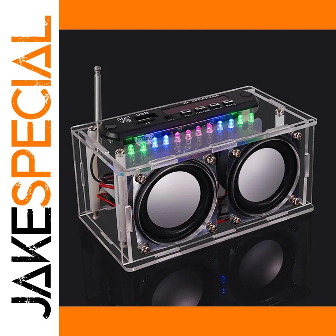 Experience versatile audio with this sleek FM radio stereo DIY kit, featuring a transparent acrylic enclosure that showcases the internal electronics. Equipped with a 2*3W amplifier and supporting dual decoding of MP3, WMA, WAV, FLAC, and APE formats, it offers rich, distortion-free sound powered by an anti-breakage amplifier chip. The device includes a digital color display, supports MMC/SD/MMA cards and USB interfaces, external LINEIN input, and Bluetooth 5.0 via JQ BT—perfect for seamless wireless streaming. Operating on DC 5V with a recommended 2A fast charger, its compact 100*30mm PCB size and vibrant RGB LEDs ensure a modern, high-tech aesthetic ideal for any audio enthusiast.