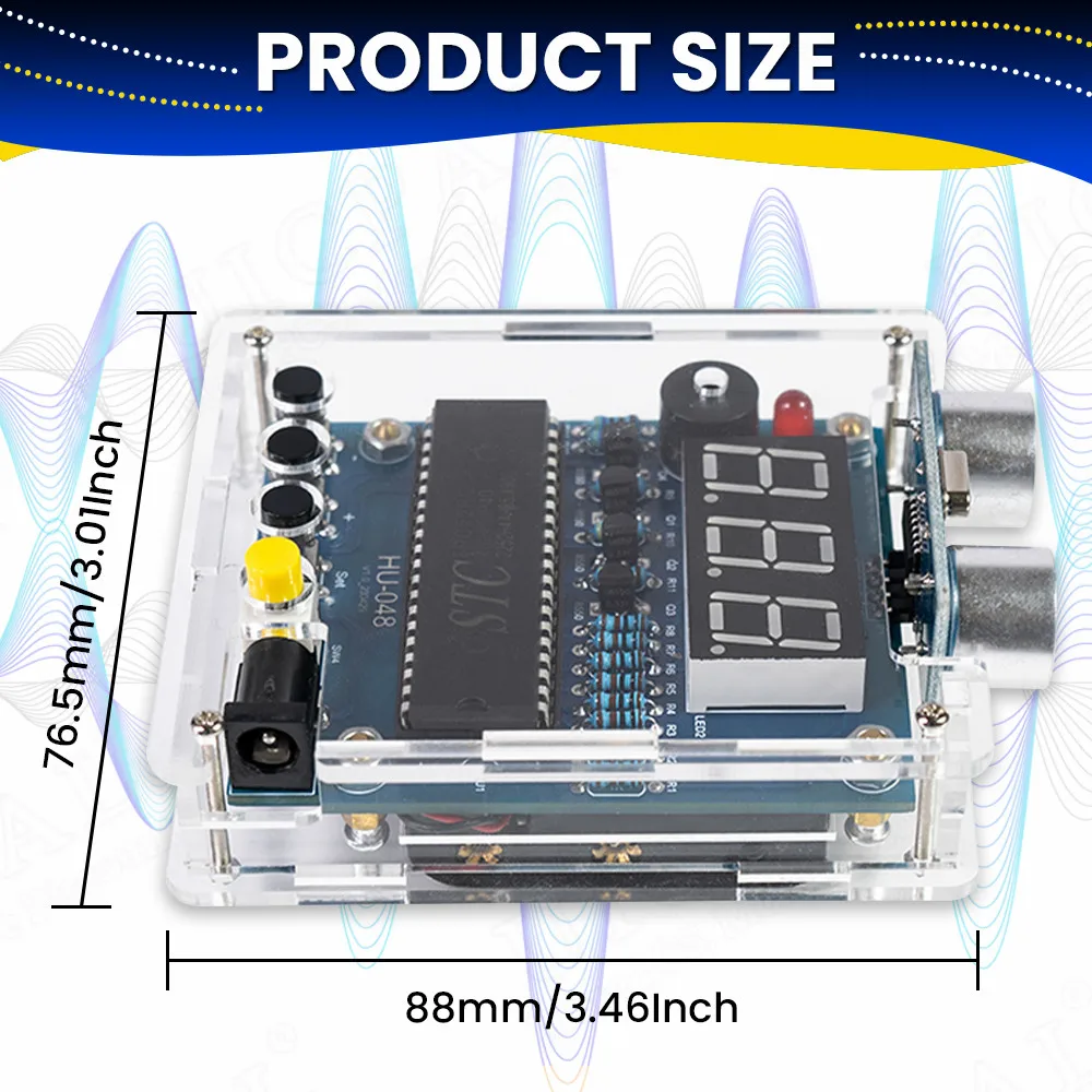 Experience the satisfaction of building your own advanced distance measurement device with this sleek, transparent plastic enclosure revealing precise electronic components inside. Designed for hobbyists and electronics enthusiasts, this kit offers a modern, technical aesthetic highlighted by the metallic ultrasonic sensors and colorful circuit board. The prominent digital tube display provides clear, bold numerals for easy readings up to 4 meters. Integrated features like a buzzer alarm, LED indicators, and customizable options make this kit versatile for various DIY projects. Whether you're practicing soldering or enhancing sensing capabilities, this compact device combines functionality and aesthetics to elevate your electronic skills and projects.