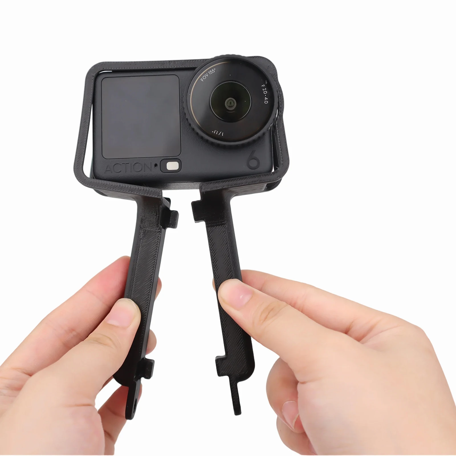 Enhance your shooting experience with this durable black plastic camera protector case frame designed specifically for the DJI Osmo Action 6. It features a versatile handheld extension mount holder, allowing for flexible shooting angles and improved stability during action-packed moments. The sleek, modern design offers robust protection and easy access to your camera, making it an essential accessory for capturing high-quality footage. Perfect for enthusiasts seeking durability, adaptability, and a streamlined aesthetic, this functional frame ensures your DJI Osmo Action 6 stays secure while providing the convenience of adjustable shooting configurations.