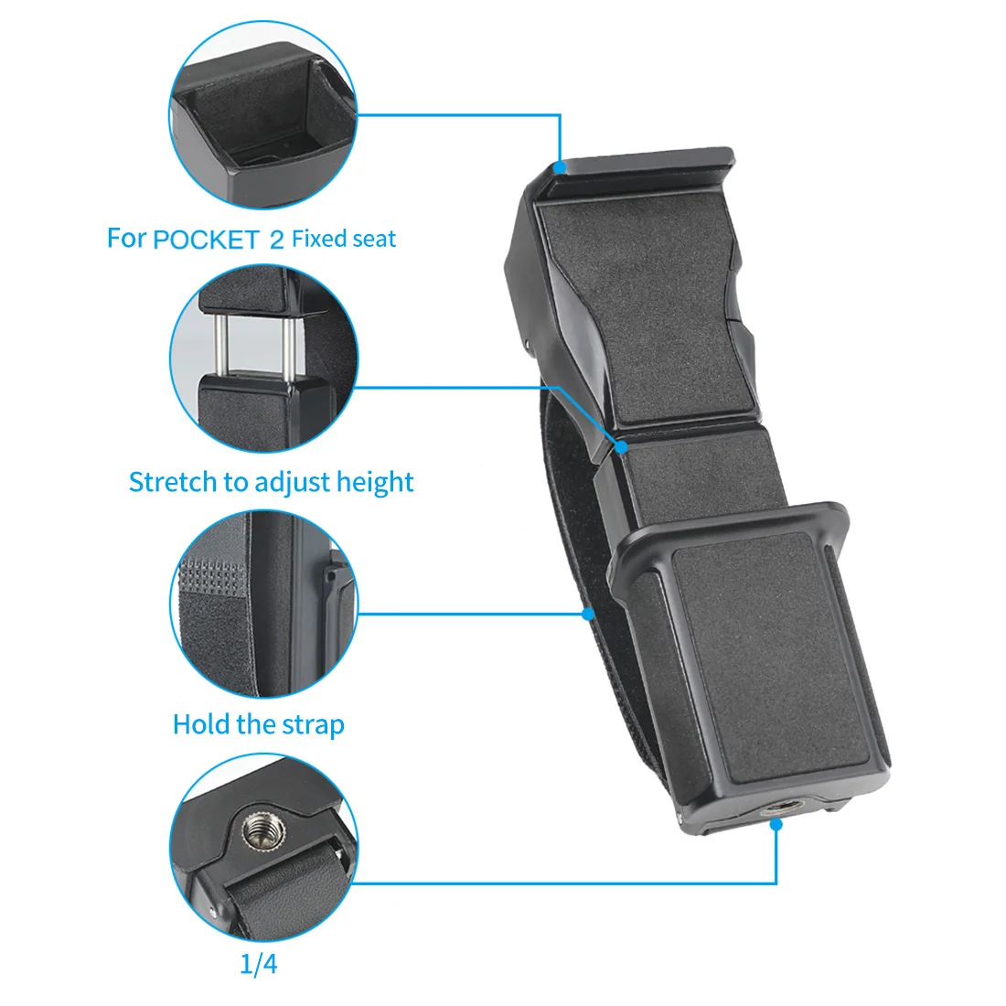 Enhance your DJI Osmo Pocket 2 gimbal setup with this comprehensive accessories set, featuring eight essential items designed for durability and convenience. Included are a lightweight handheld stand (74g) with dimensions of 4.4 x 11.5cm and a 30cm data cable, a versatile 3-in-1 hot shoe adapter with 1/4 screw made of plastic and aluminum alloy in sleek black, and a 3D-printed mobile phone clip supporting phones between 60-90mm wide with anti-slip sponge and double screw holes. Protect your lens with two 3D-printed plastic covers featuring sponge cushioning, and safeguard the mini rocker with a protective cover. An adjustable nylon wrist strap offers additional security, making your filming experience more professional and hassle-free.