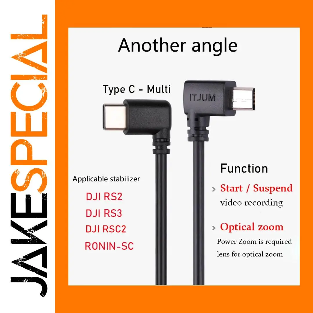 This sleek USB-C to Multi Cable is engineered for seamless connectivity with DJI stabilizers including the Ronin RS2, RS3, and RSC2, as well as various Sony cameras. The cable features a black exterior, designed for durability and functionality in professional filming environments. One end boasts a right-angle USB Type-C connector, facilitating easy connection in tight spaces, while the other end offers multi-connectivity, making it versatile across devices. With its standard USB type, this cable ensures excellent data and power transmission, bolstering your filming efficiency. Enjoy smooth video recording and optical zoom capabilities with compatible equipment, making this cable an essential addition to your gear.