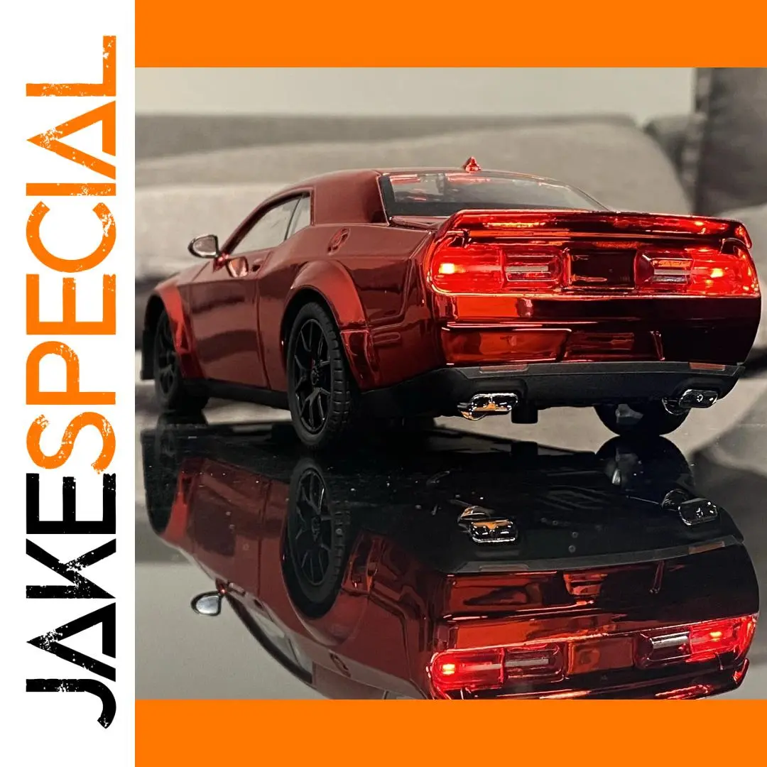 Experience the thrill of owning a highly detailed 1:24 scale diecast model of the iconic Dodge Challenger SRT Hellcat Redeye. Crafted with a durable alloy construction and finished with a shiny electroplating treatment, this model exudes realism and elegance. Its vibrant glossy red, white, black, grey, gold, or purple finish highlights its sporty, aggressive design. Every detail, from the segmented tail lights to the dual chrome exhaust pipes and multi-spoke black wheels, reflects exceptional craftsmanship. The transparent windows offer a glimpse into the intricately designed interior, perfect for display and collection. This model is an ideal decorative piece for passionate enthusiasts who appreciate high-quality craftsmanship and meticulous detailing.