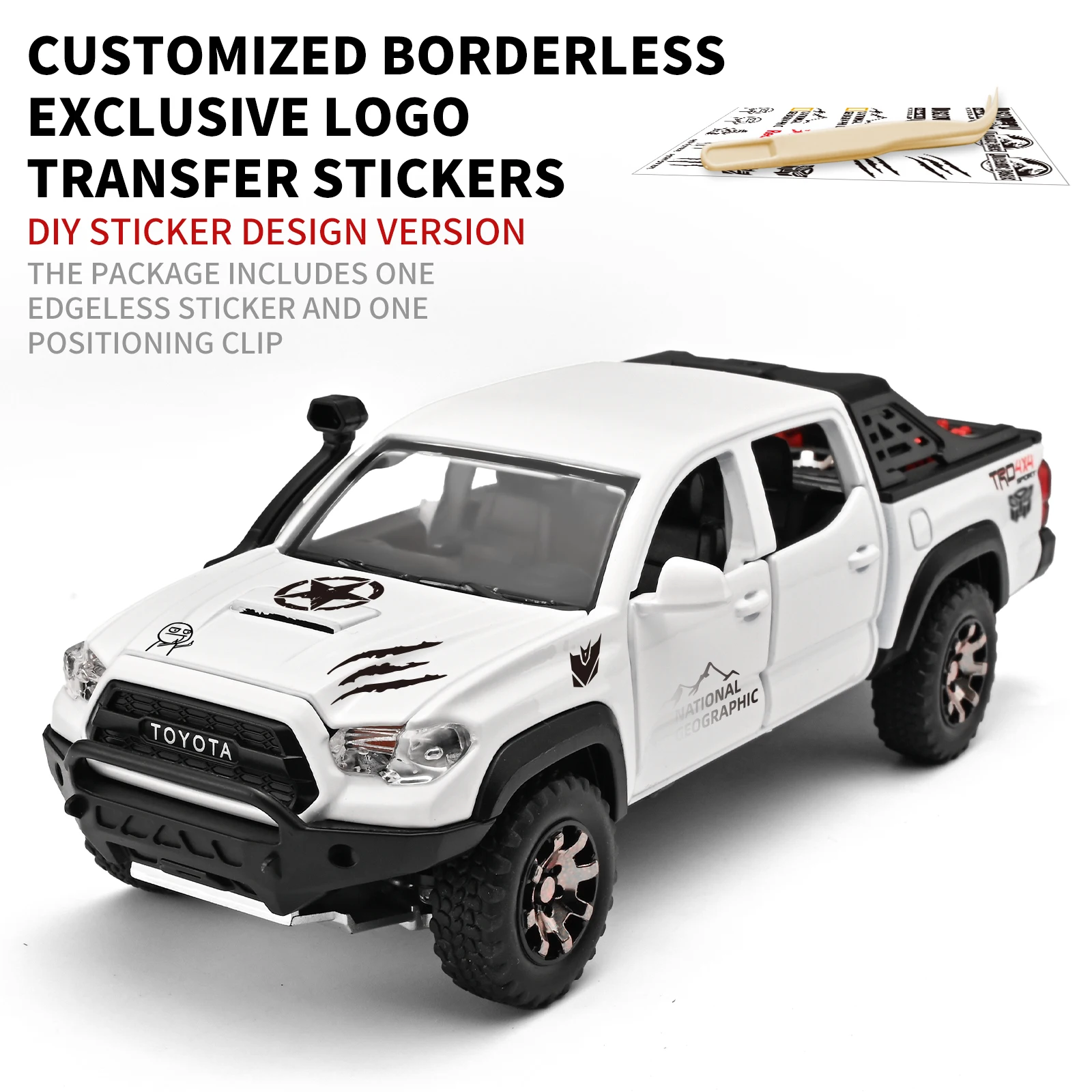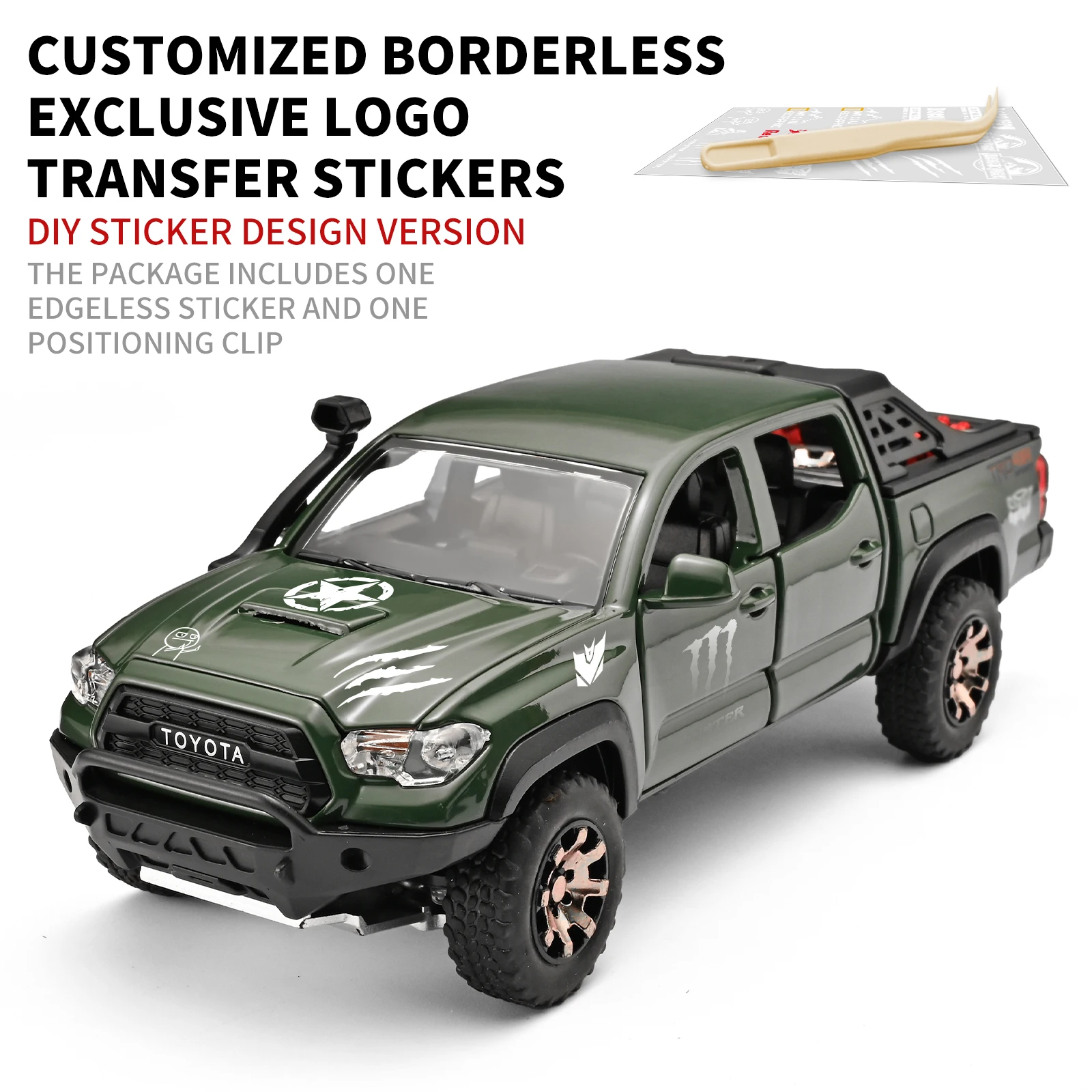 - Technical specifications include dimensions fitting a 1:32 scale, a sturdy metal body, integrated sound and light modules, rugged off-road tires with deep treads, and compatibility with various display or play environments.