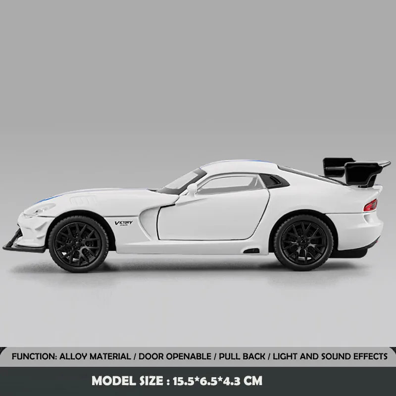 Indulge your passion for automobiles with this exquisite Dodge Viper diecast model. Whether for display or as a treasured collectible, it promises to capture attention and admiration. Don't miss the opportunity to own such a remarkable piece that signifies performance and prestige in the automotive world. Elevate your collection by purchasing this striking model now!
