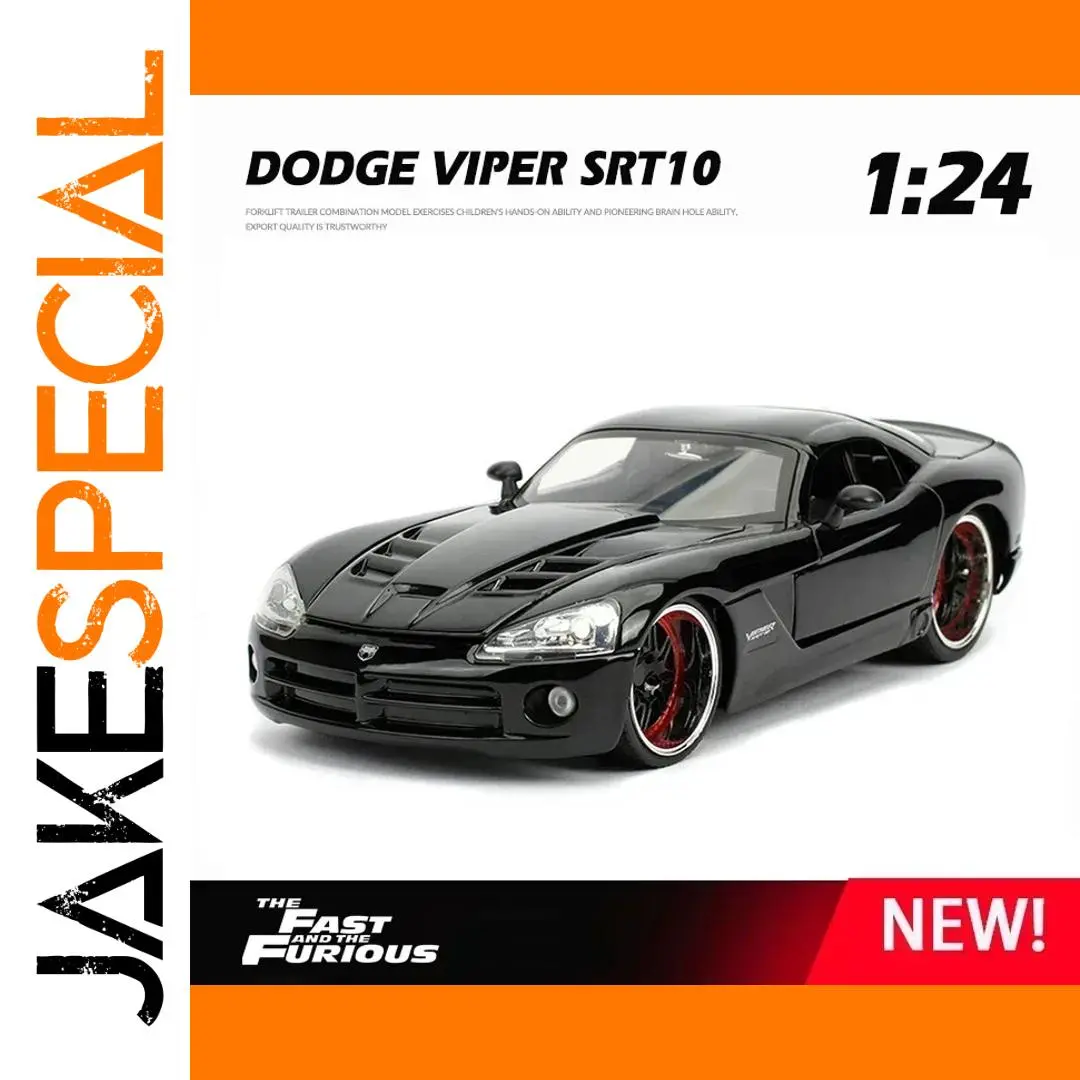 Experience the sleek, aggressive design of the 1:24 scale diecast alloy model of the Dodge Viper SRT10 Venom, crafted from alloy and plastic materials for exceptional realism. Measuring approximately 1:24, this detailed collectible features a black finish with sculpted body lines, a low-wide grille, clear headlights, vents on the hood, deep contours, and multi-spoked alloy wheels with red accents. The rear spoiler, tail lights, and aerodynamic roofline further enhance its high-performance aesthetic. Perfect for enthusiasts aged 14 and above, this model offers a striking display piece or a memorable gift, available in “Viper-boxed” and “Viper-nobox” options.
