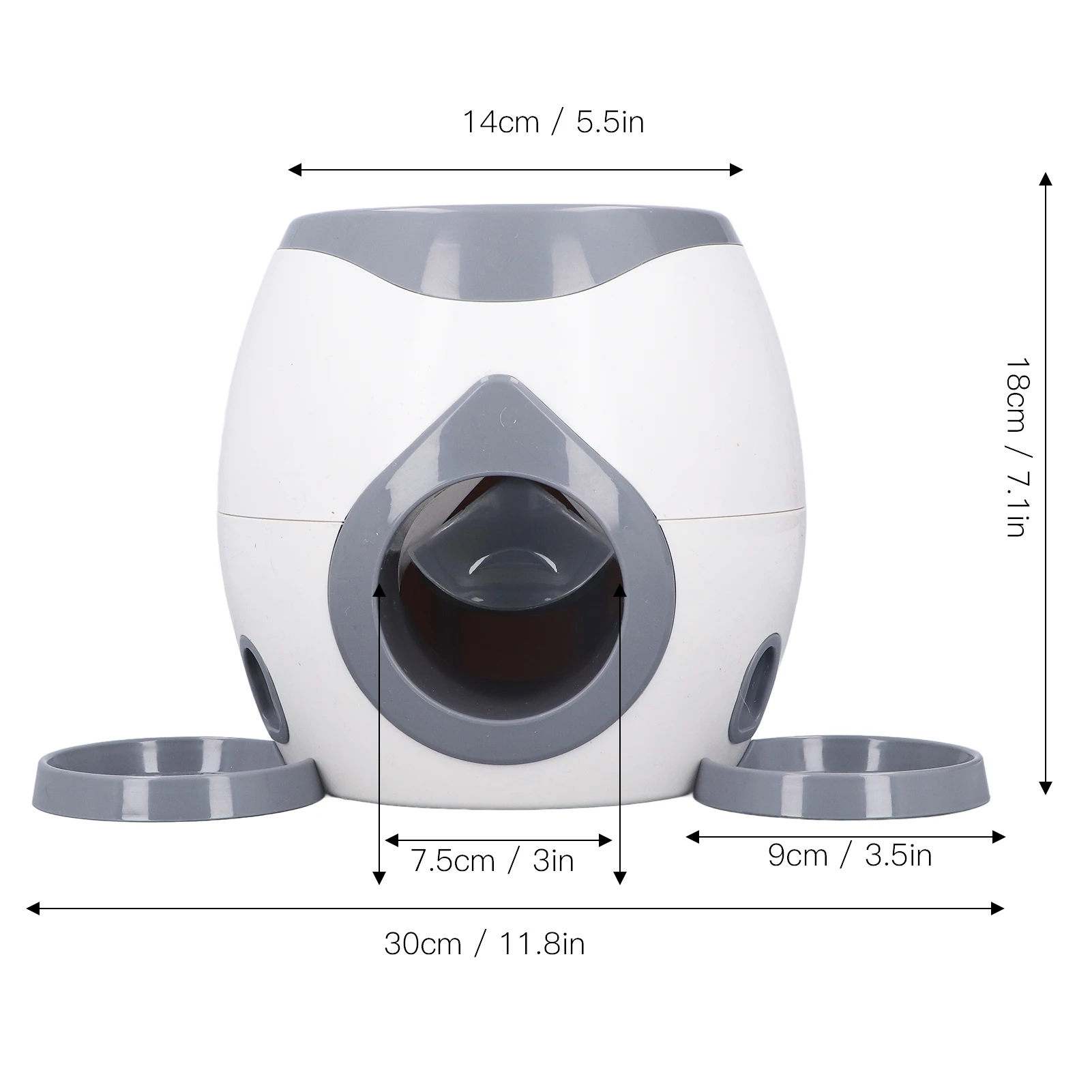 Imagine your dog happily engaging with this innovative feeding toy, encouraging exercise and mental stimulation. Its sleek, spherical design is both attractive and functional, measuring approximately 30 cm in diameter, with vibrant yellow tennis balls ready for fetch. The smooth white surface, contrasted by gray accents, adds a modern touch, making it visually appealing in your home or yard. The wide top opening for treats and the spill food tray keep snacks contained, while the tennis exit keeps your pet entertained. Built with non-toxic, odorless plastic, this toy ensures safe, worry-free fun. It’s the perfect way to keep your dog active, healthy, and happy during playtime or training sessions.