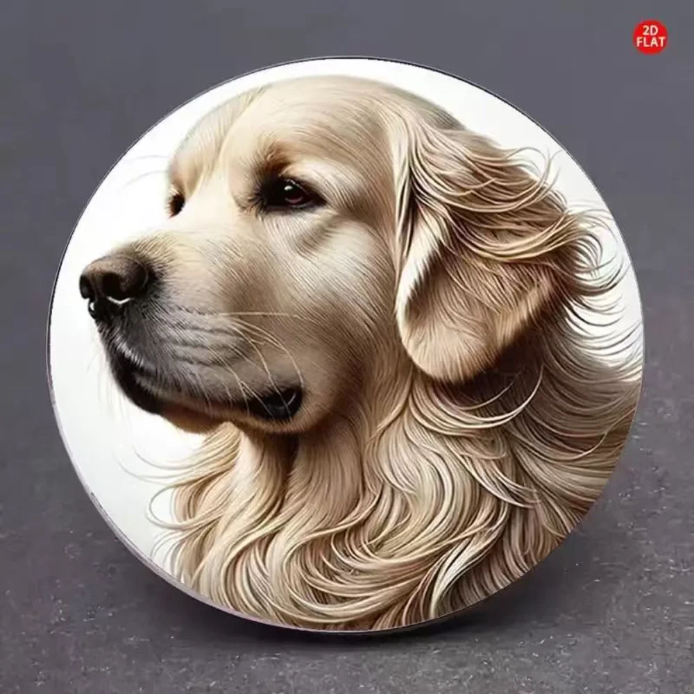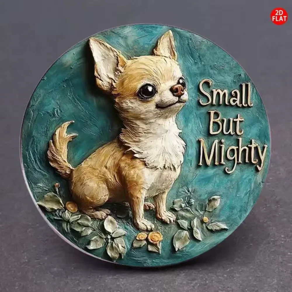 Add a touch of charm and personality to your wardrobe with this versatile alloy brooch, available in light green, light yellow, and light grey. Measuring approximately 30mm in diameter, it features a detailed, painterly illustration of a cute Chihuahua dog with expressive black eyes, pointed ears, and a cheerful expression, surrounded by stylized leaves and small decorative elements. The textured background boasts a gradient of teal shades with brushstroke details, creating a vivid, artistic appearance. Suitable for jackets, backpacks, hats, or DIY projects, this brooch combines a whimsical design with a glossy finish, perfect for expressing your unique style across various fashion tastes.