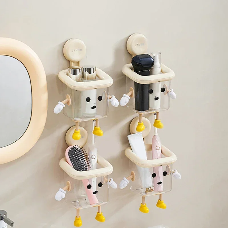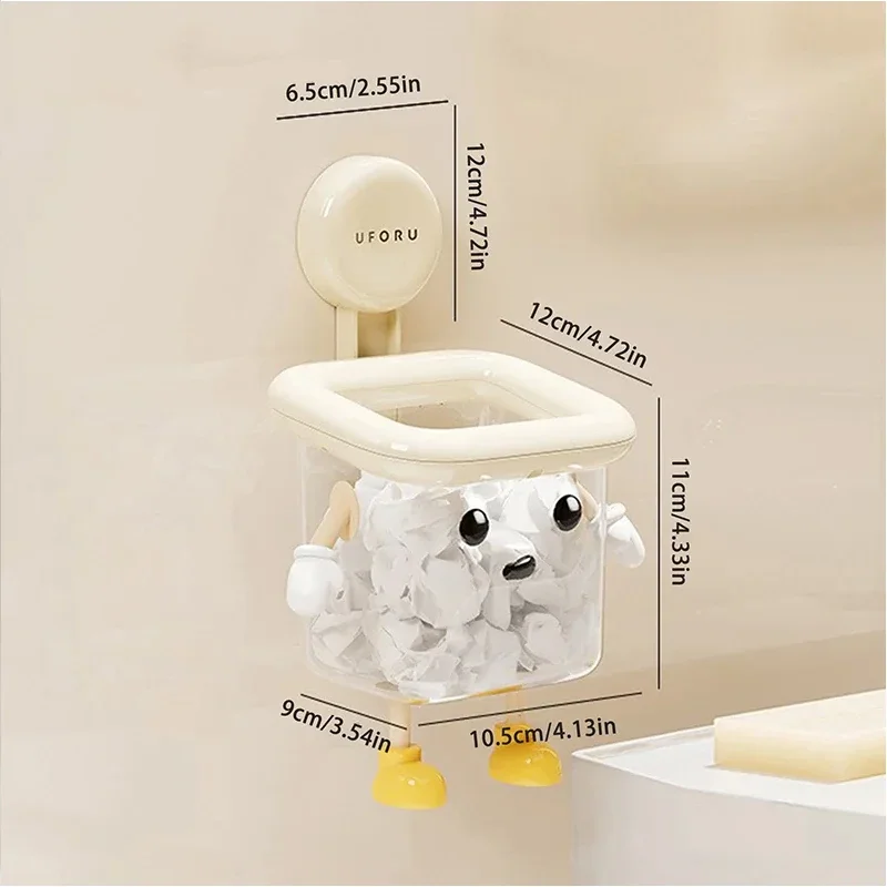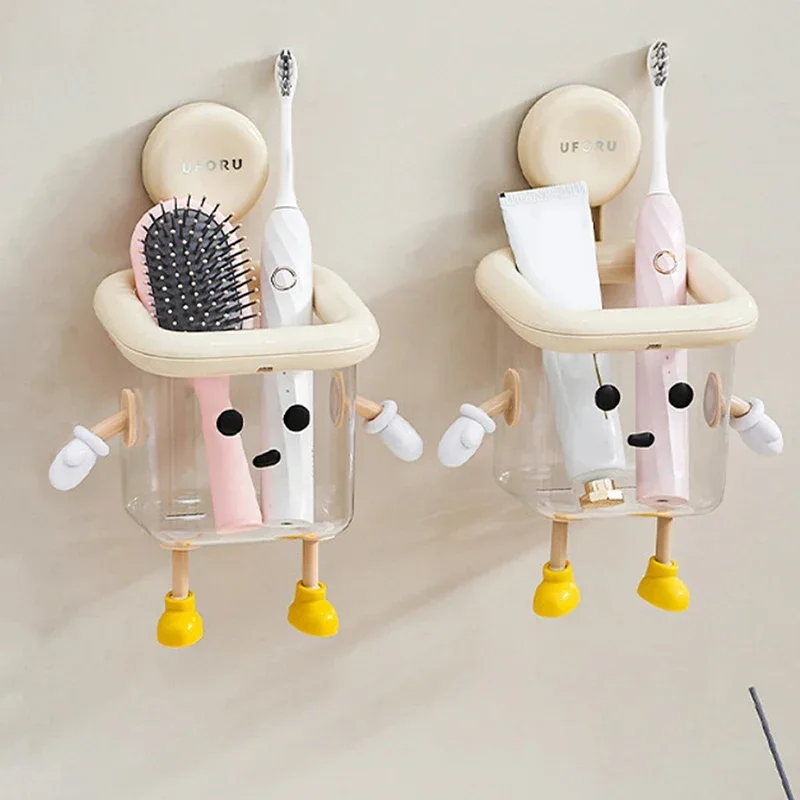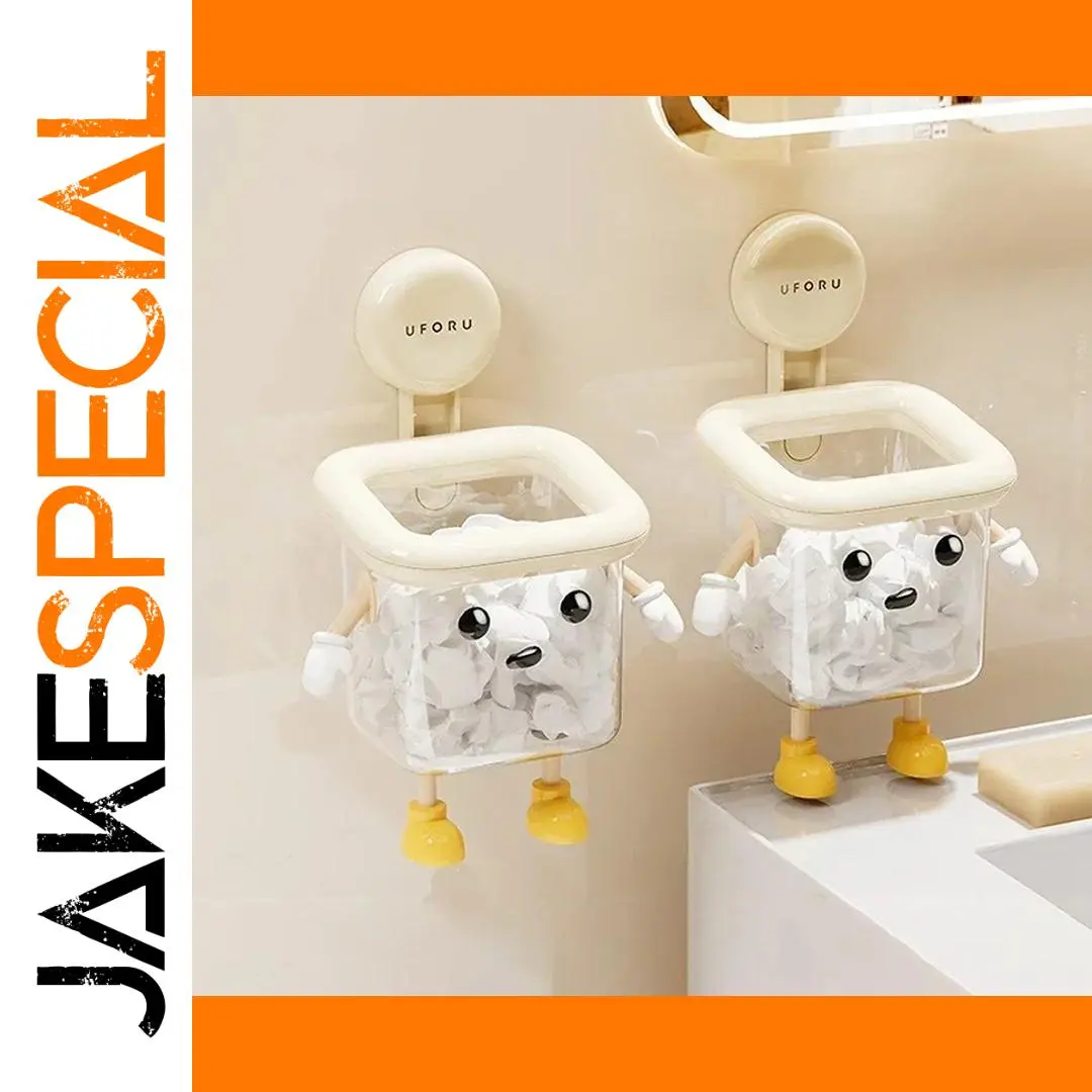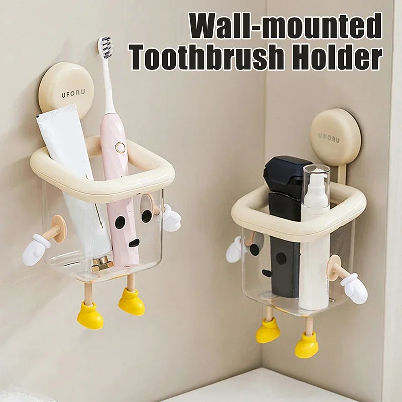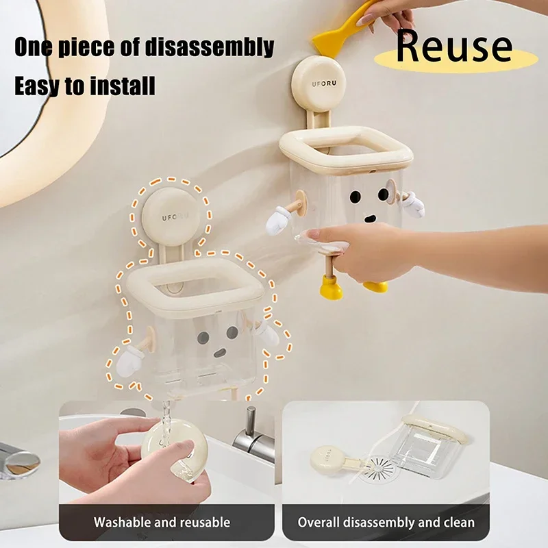 Imagine bringing a touch of playful charm to your bathroom with this cute dog-themed toothbrush holder. Crafted from durable beige plastic, it features a whimsical face with large, black, round eyes and a small black nose that instantly adds personality to your space. The open-top square container, equipped with a white rim, provides ample space for toothbrushes, toothpaste, razors, and dental floss. Small white paw-like arms and yellow shoe-shaped feet elevate the design, making it both functional and fun. The suction cup allows for easy, drill-free installation, saving space and preventing clutter. Its moisture-resistant construction ensures long-lasting use, making your daily hygiene routine more cheerful and organized.