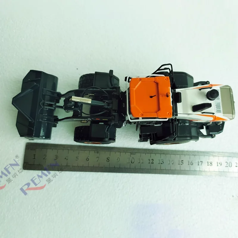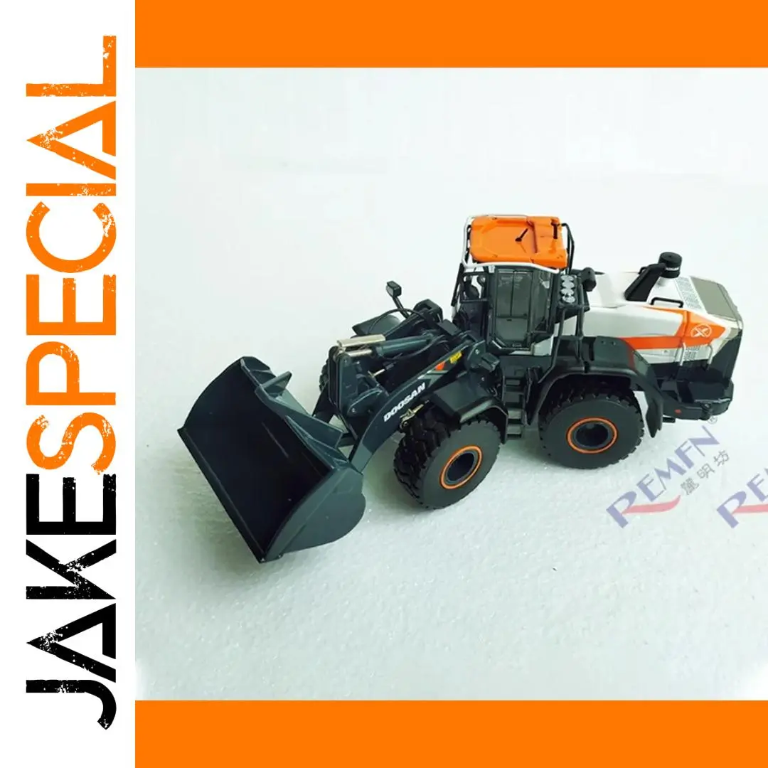Discover the stunning realism of this detailed 1:50 scale diecast model of the Doosan DL420-X loader, meticulously crafted from alloy to showcase intricate engineering details. Its sleek black and white color palette is accentuated with vibrant orange trims, highlighting the loader’s robust industrial design. The white cab with a tinted black windshield provides a striking contrast to the textured black front bucket and articulated arms, which feature mechanical detailing and hydraulic-like components. Rugged, deep-tread black wheels with vivid orange rims strengthen its authentic industrial appearance. Perfect for display, this model's realistic vents, panel lines, and decals faithfully emulate the look of real machinery, making it an ideal addition for collectors and enthusiasts seeking a high-quality decorative piece.