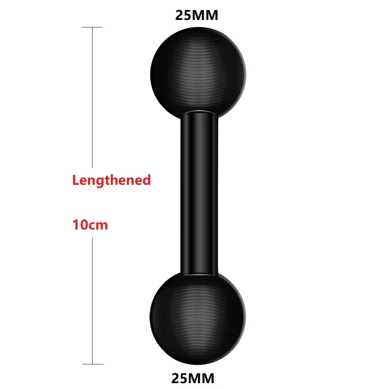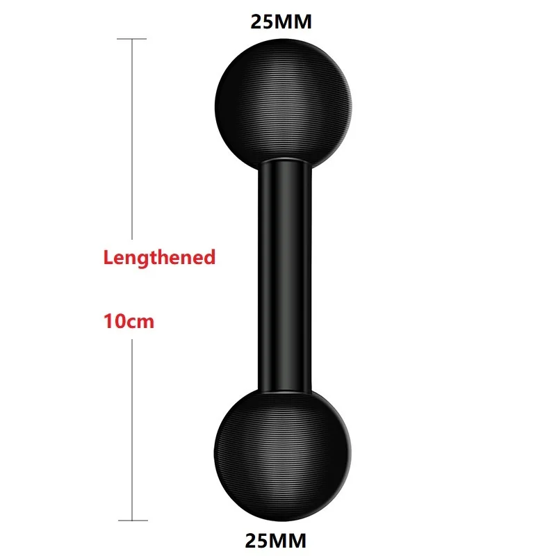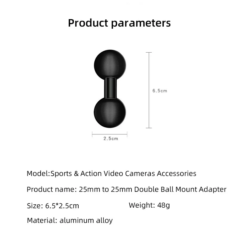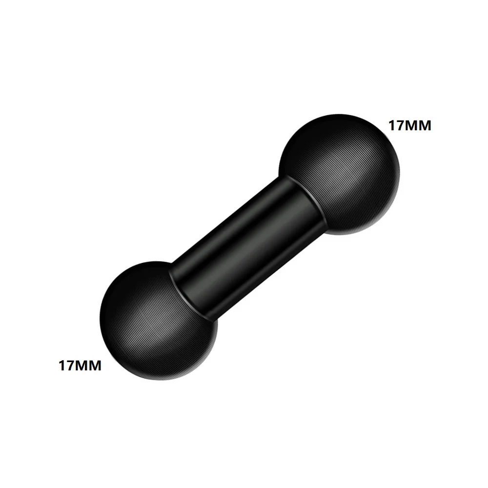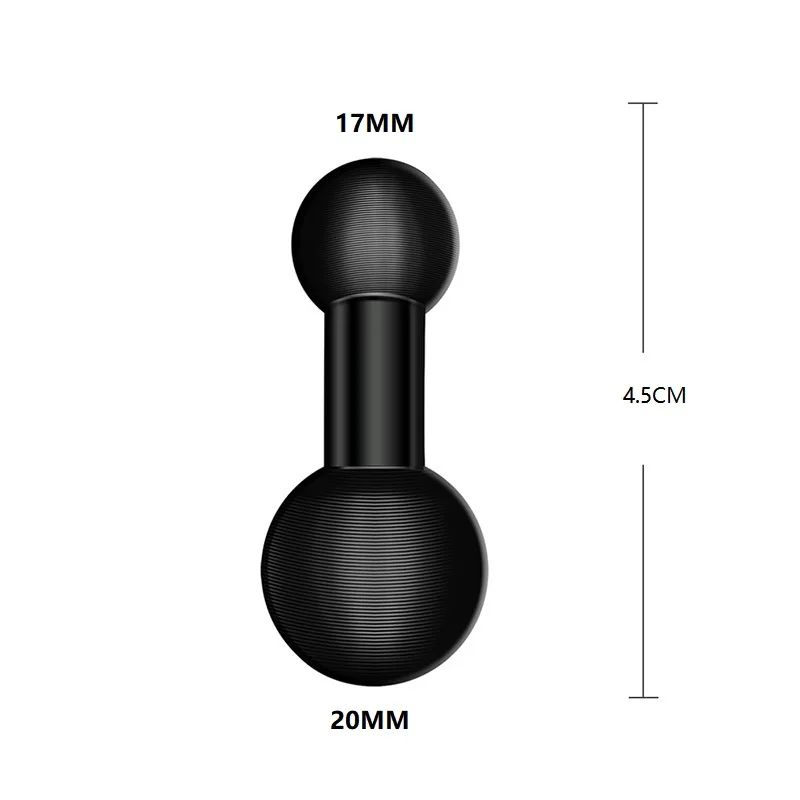 This double ball mount adapter features a durable aluminum construction with a 1-inch (25mm) base compatible with industry-standard mounting arms. It includes dual spherical ball heads with textured surfaces and concentric grooves for enhanced grip, allowing 360-degree rotation for precise, flexible device positioning. Available in multiple size configurations such as 17mm to 17mm, 17mm to 20mm, 20mm to 20mm, 25mm to 17mm, 25mm to 20mm, and 25mm to 25mm, including long variants. Suitable for a wide range of action cameras from brands like DJI, Yi, Fujifilm, Insta360, Drift, Sjcam, SOOCOO, EKEN, Garmin, GoPro, Sony, Nikon, Canon, AKASO, and others, offering a secure and versatile mounting solution.