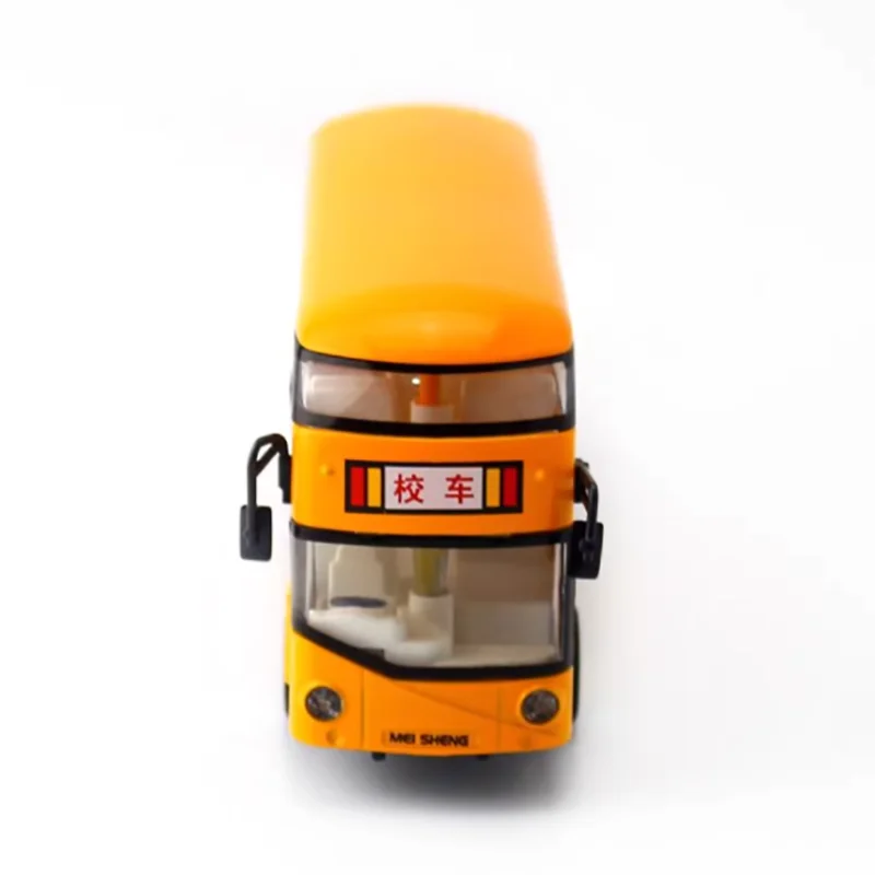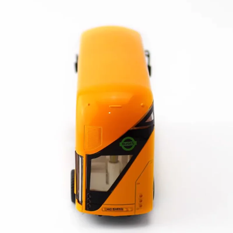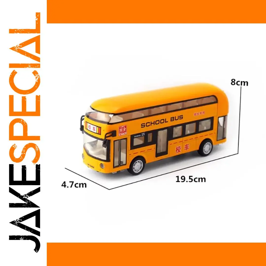 Immerse yourself in the charm of this highly detailed diecast replica of a double-decker sightseeing school bus. Measuring approximately 19.5 cm in length, 4.7 cm in width, and 8 cm in height, this model boasts an authentic yellow-orange hue that faithfully captures the iconic look of classic school and sightseeing buses. Constructed from durable alloy and plastic, it offers a sturdy, metallic finish with fine details such as a curved, smooth upper deck, clear windshield, and black-framed windows that provide a realistic appearance. The model’s small silver hubcaps, black tires, and detailed side mirrors enhance its authenticity, making it a perfect decorative piece for collectors or enthusiasts seeking a vivid, realistic display that vividly captures the essence of a vintage bus.