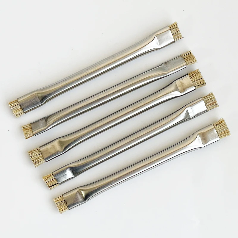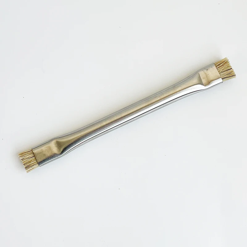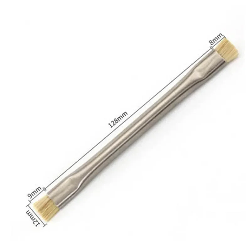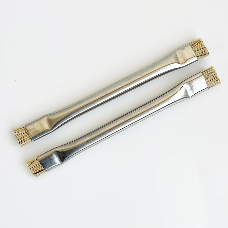 Experience precise electronic maintenance with this double-head ESD-safe brush, perfect for PCB rework, dust removal, and cleaning of smartphones like iPhone and Samsung. Crafted with sleek metallic handles featuring a polished, reflective finish for durability and style, each handle is ergonomically curved for comfortable grip. The flat, densely packed light-colored fiber brush heads on both ends ensure gentle, effective cleaning of sensitive electronic components. Available in sets of 1, 2, or 5 pieces, these professional-grade brushes combine functionality, safety, and quality, making them an essential tool for repair technicians seeking reliable, static-safe cleaning solutions for delicate electronics.