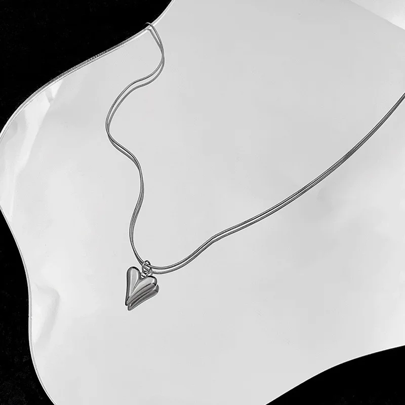 Discover the timeless charm of this this double-layered heart pendant necklace designed for women. With its sleek silver-tone finish, it features a delicate, fine link chain that offers a refined and modern look. The standout element is a polished, three-dimensional heart-shaped pendant, which measures 1 to 5 centimeters, exuding sophistication with its smooth, reflective surface that beautifully catches light. The necklace's minimalist style adds versatility to your wardrobe, perfect for stylish occasions such as parties or casual outings. Imagine yourself wearing this beautiful piece, enhancing your outfit and feeling confident in its elegant simplicity. Crafted with care, this necklace is a perfect gift for a loved one or a delightful treat for yourself, bringing subtle luxury to everyday wear.