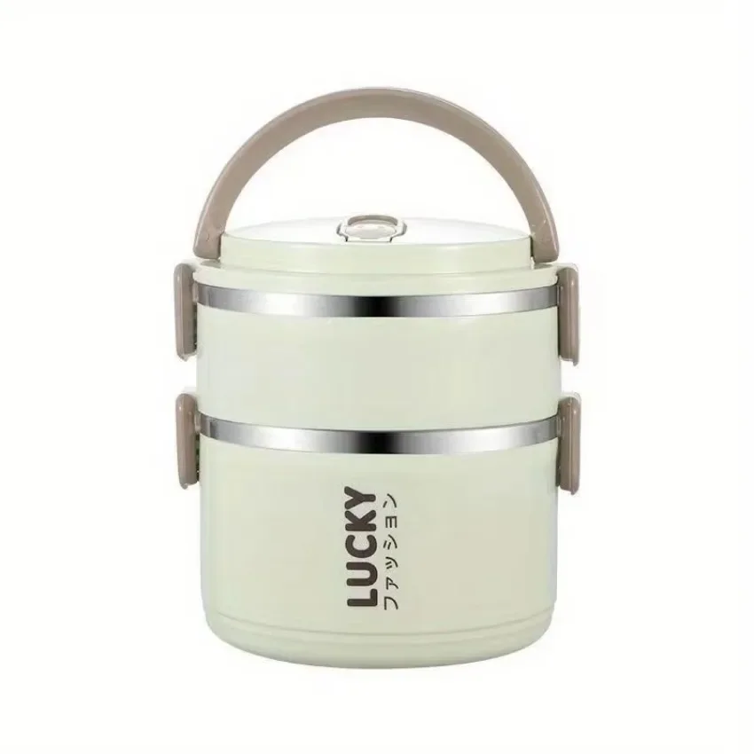 Imagine yourself enjoying a fresh, warm lunch from this adorable stainless steel Bento container. With its sleek round shape and smooth beige matte finish, it combines practicality with a charming aesthetic. The double-layer design, separated by a metallic band, offers excellent thermal insulation to keep your food hot or cold longer. The upper lid features a gentle, slightly domed curve and is equipped with an ergonomic handle, making it easy to carry. The “LUCKY” branding adds a modern, playful touch against the minimalist background. Whether for work, school, or outdoor adventures, this container offers both style and function, ensuring your meals stay fresh and secure while adding a touch of cuteness to your day. It’s the perfect companion for your meal-prepping needs.