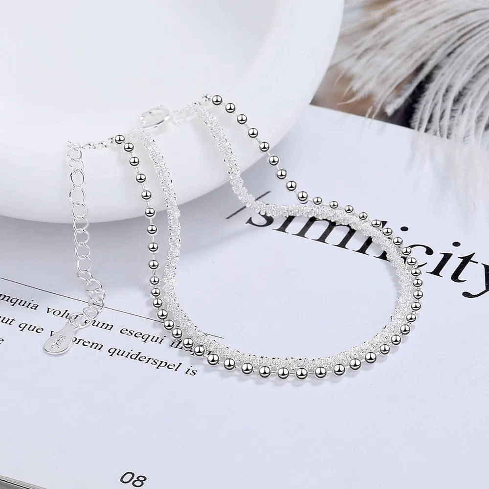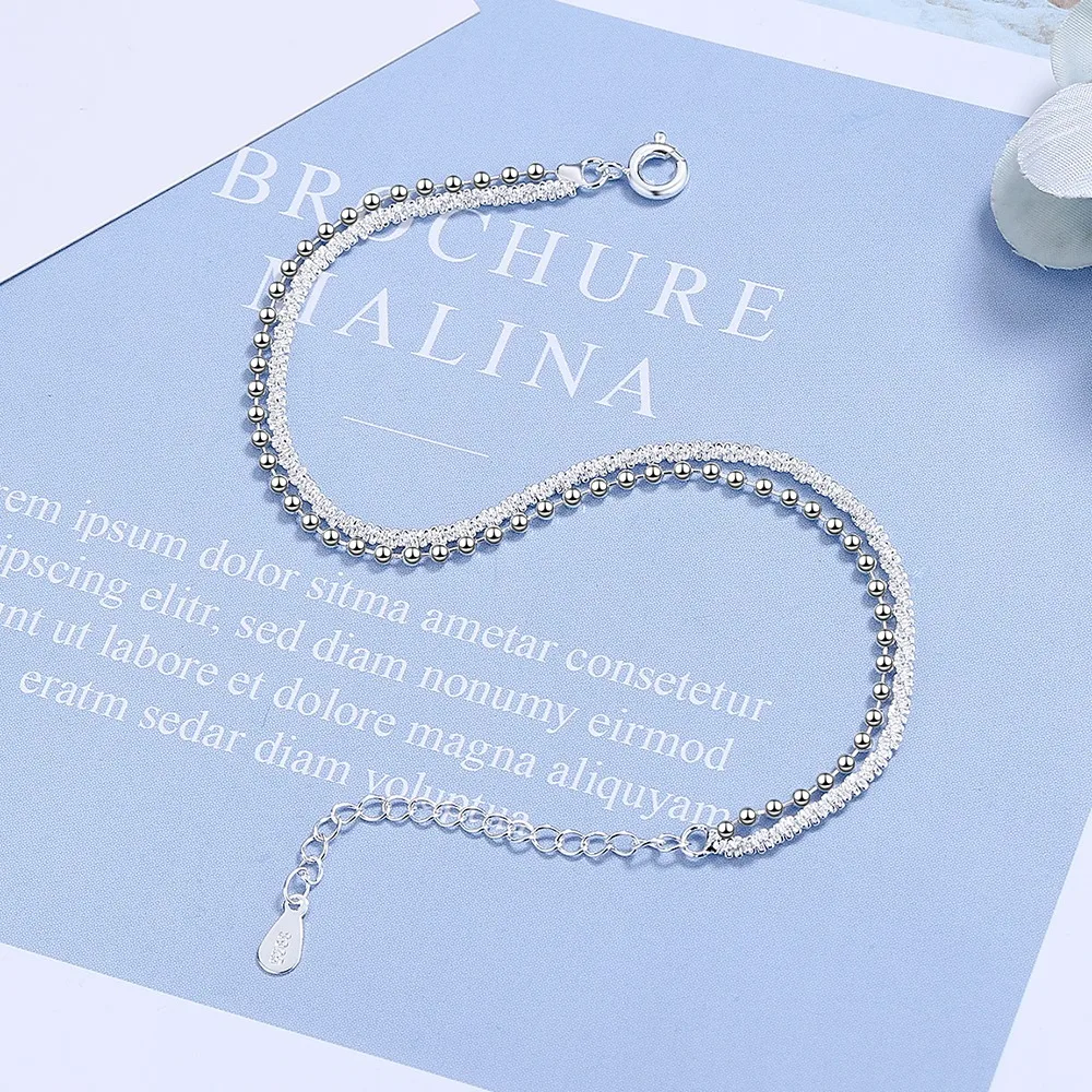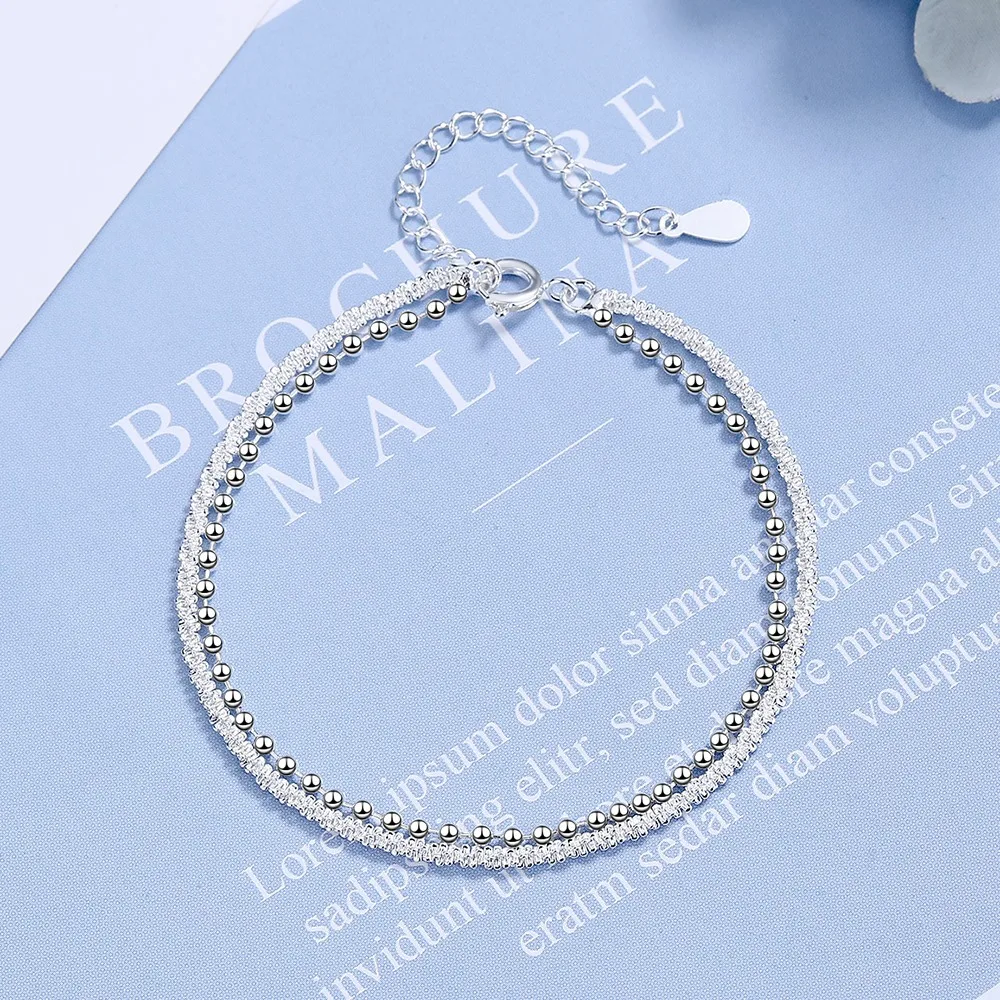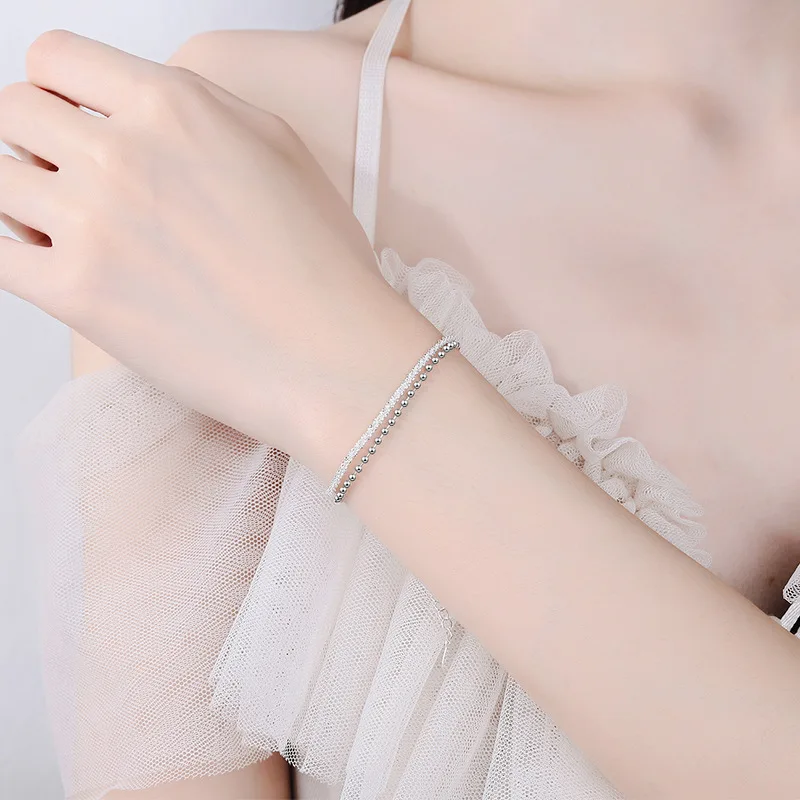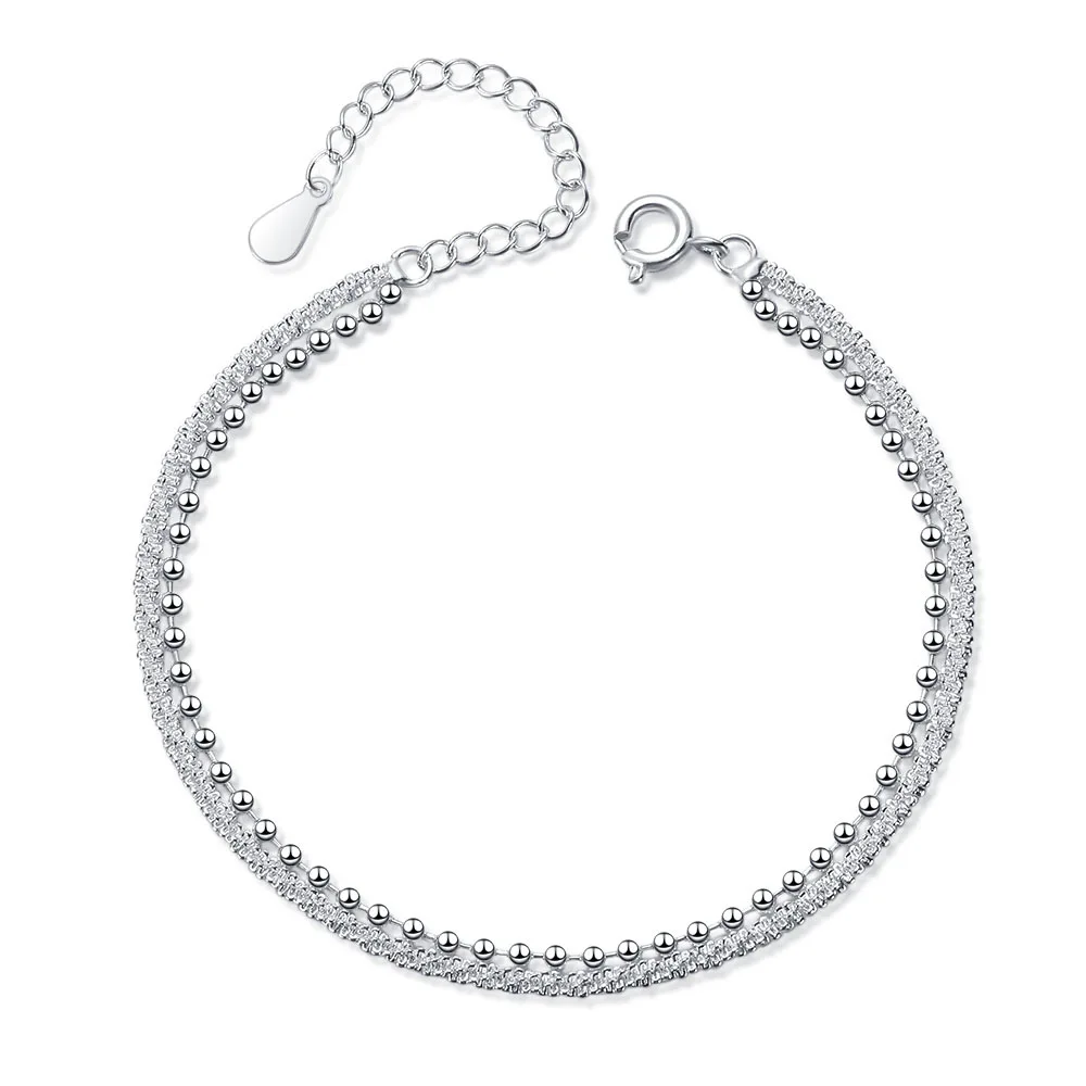 Imagine elevating your style effortlessly with this elegant silver-colored bracelet. Crafted from Tibetan silver, it features a dual-layer design that combines polished round beads and textured Singapore chains. The polished beads reflect light beautifully, giving a sleek, shiny appearance, while the twisted chain adds subtle texture and sophistication. The adjustable toggle clasp ensures a perfect fit, making it comfortable to wear all day. Whether you dress up or down, this trendy accessory will effortlessly complement your look. Its versatile design makes it suitable for casual outings, formal events, or as a stylish fitness tracker. With its modern aesthetic and high-quality craftsmanship, this bracelet becomes an essential addition to your jewelry collection, reflecting your unique personality and fashion sense.