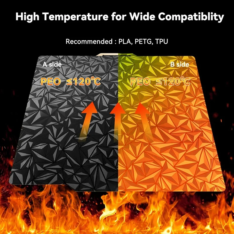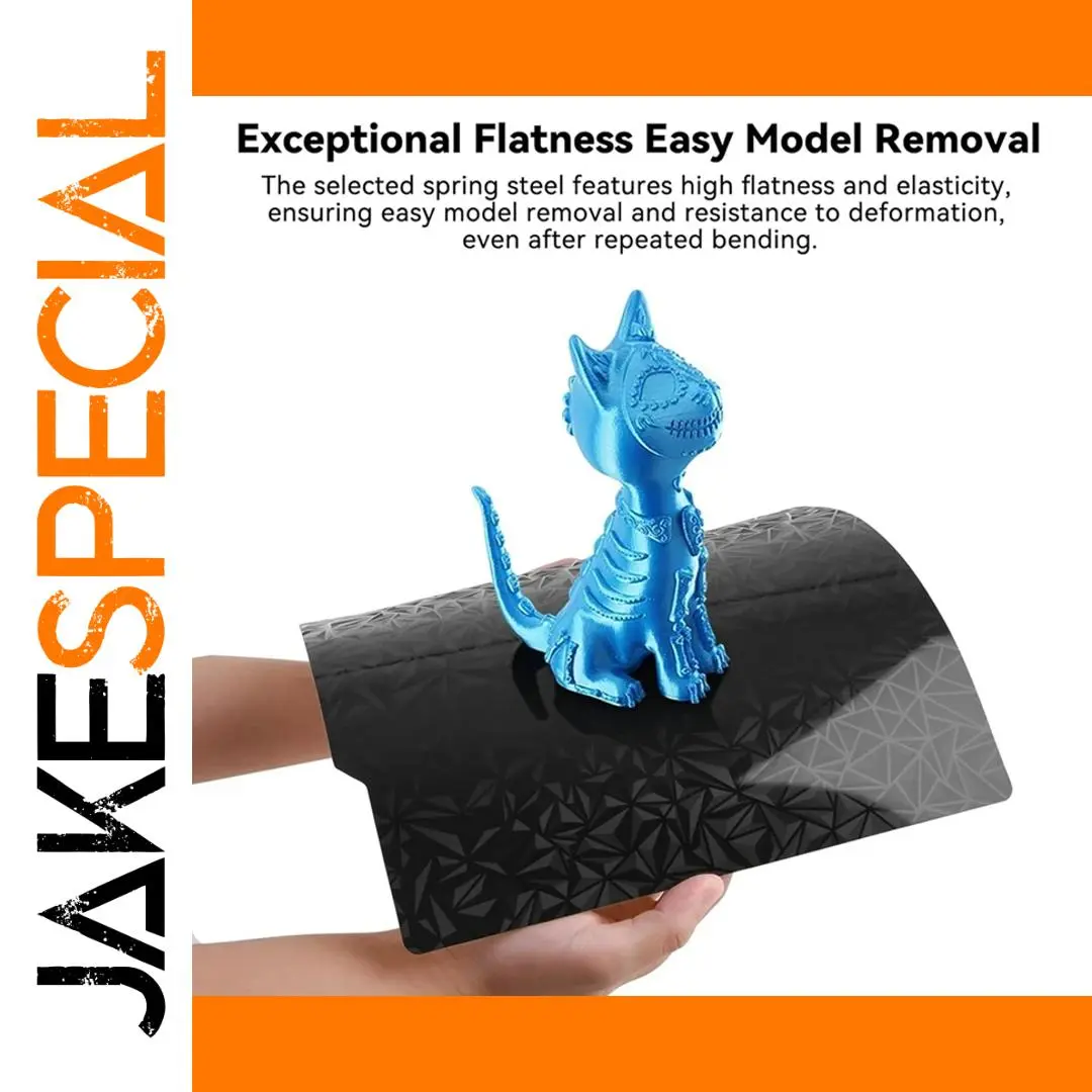 Enhance your 3D printing experience with this high-quality double-sided build plate measuring 257x257mm, compatible with models including A1, P1S, P1P, X1, X1C, X1E, and X1-Carbon. Featuring a textured, holographic surface on both sides, it provides excellent adhesion to prevent warping during printing of PLA, PETG, and TPU at temperatures up to 120°C. The magnetic base, effective up to 110°C, ensures stability with high-strength magnetic stickers. Crafted from spring steel for exceptional flatness, elasticity, and resistance to deformation, it allows easy removal of models through bending, eliminating the need for tape, glue, or spatulas.