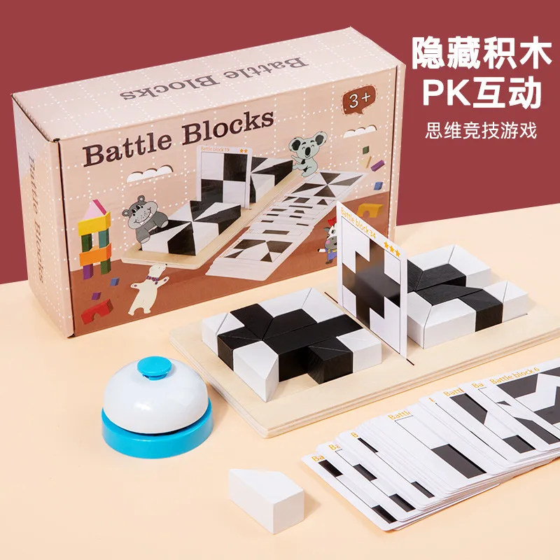 Imagine engaging yourself or your loved ones in a captivating puzzle that stimulates the mind while offering a tactile, visual experience. The double wooden hidden building block puzzle combines geometric artistry with educational fun, perfect for ages 6 to 12, as well as older users. Crafted from natural wood with a polished, glossy finish, the pieces feature striking black and white colors that create high-contrast, symmetrical patterns. Each set includes small polygonal shapes like triangles and trapezoids, all designed to fit precisely together within matching square outlines. The two trays accommodate building for two players simultaneously, fostering social interaction and logical thinking while keeping the focus on design harmony and pattern recognition. This puzzle is ideal for developing cognitive skills in an engaging, hands-on way, ensuring relaxing yet stimulating activity.