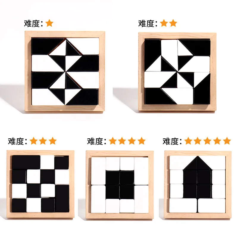 - This innovative puzzle consists of small wooden blocks in contrasting black and white, perfect for encouraging pattern recognition and visual discrimination skills for children and adults.