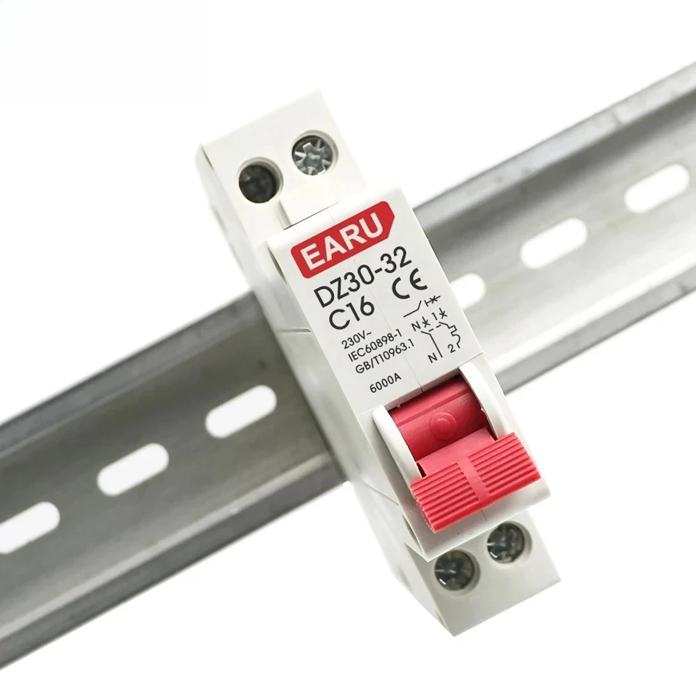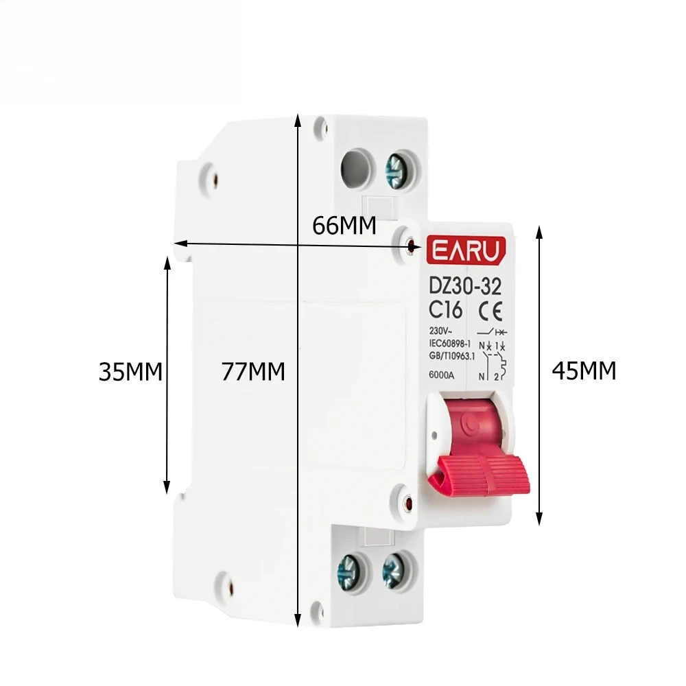 Experience reliable electrical protection with this compact DZ30-32 DPN-32 Mini Circuit Breaker (MCB), designed for household applications. Available in rated currents of 6A, 10A, 16A, 20A, 25A, and 32A, it features a sleek white plastic body with bold red toggle switches for easy manual operation. Its single pole with neutral (1P+N) configuration ensures efficient circuit control, while the din rail mounting cutout offers straightforward installation. Crafted with precise specifications, including a rated voltage of 230V and a rated current up to 6000A, this high-quality MCB provides safety, durability, and peace of mind in managing your electrical system effectively.