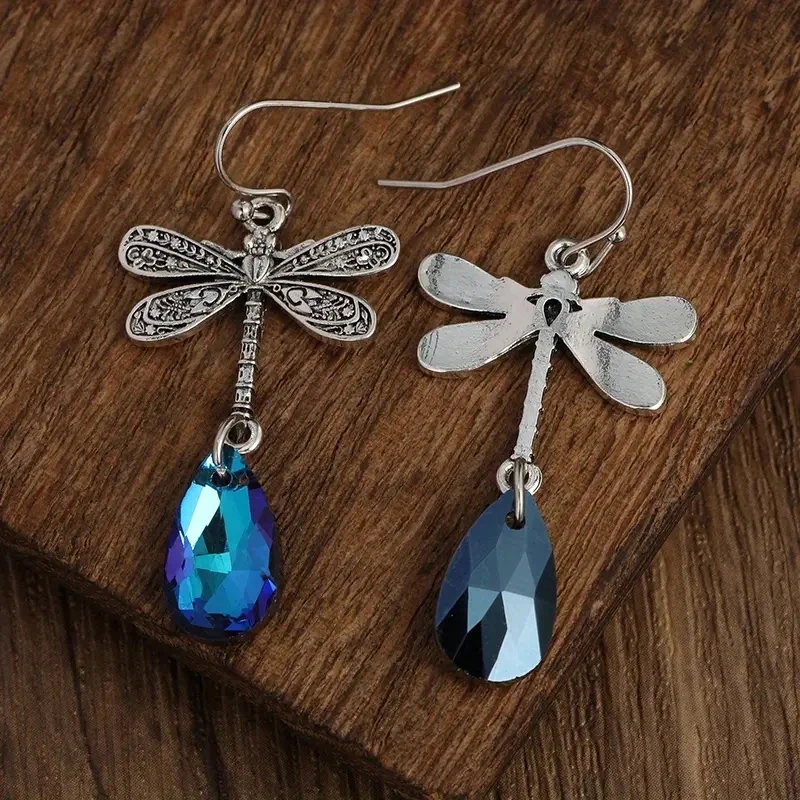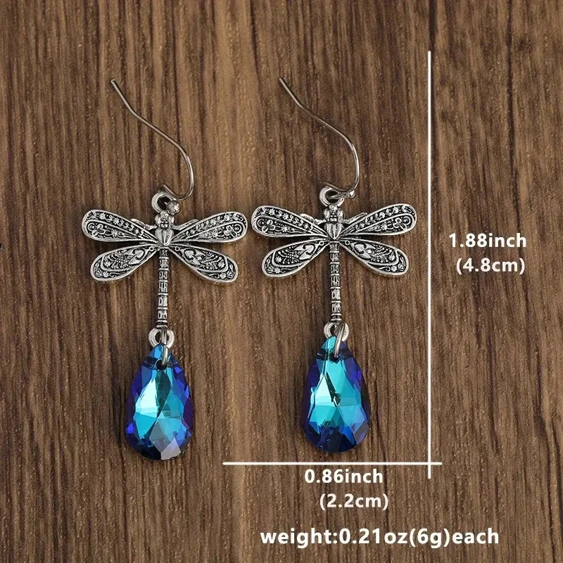 Dragonfly Blue Gem Drop Earrings