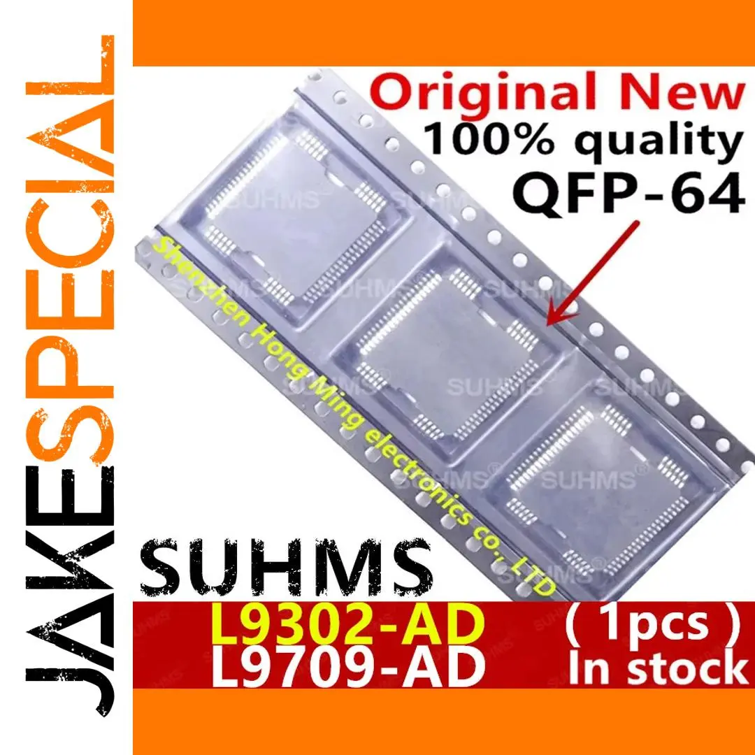 This new drive IC comes in a QFP-64 package, compatible with models L9302-AD and L9709-AD, featuring 64 precise contact pins arranged symmetrically around a sleek, reflective metallic square body. Designed for computer applications, it meets international standards for supply voltage, dissipation power, and operating temperature, ensuring reliable performance. The component exudes a modern, high-tech aesthetic with smooth, clean lines, and meticulous craftsmanship reflected in its tiny, evenly spaced solder contact pads along each side. Perfect for custom projects, it offers a robust, professional-grade solution for your electronics, emphasizing quality, authenticity, and advanced technology.