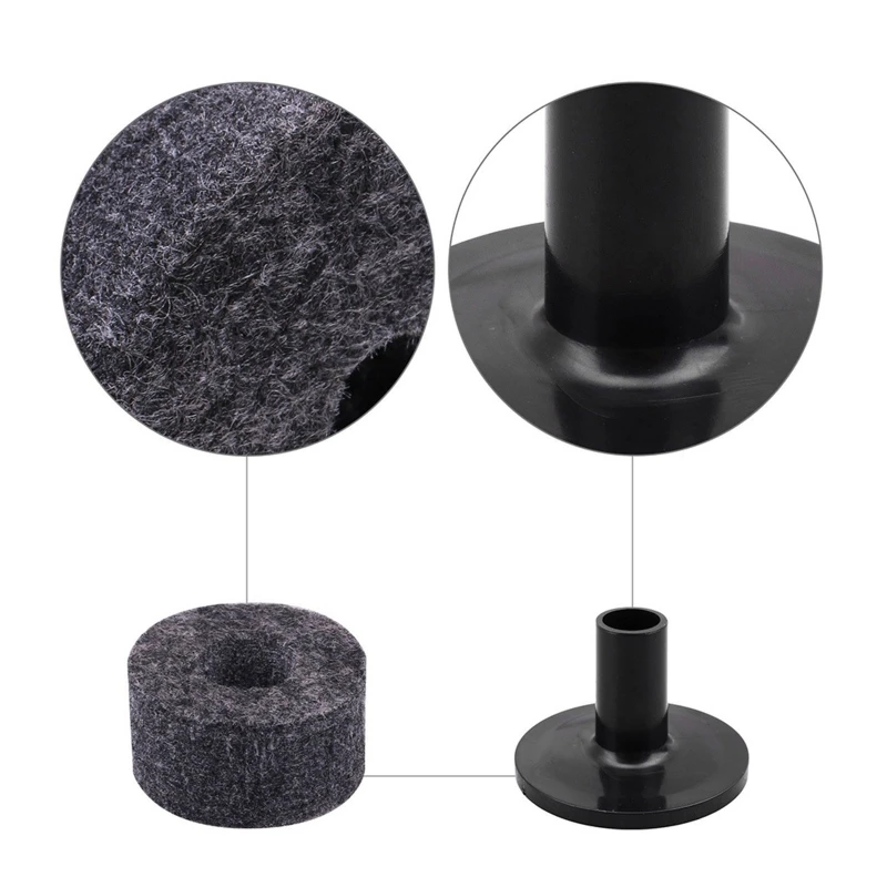 Imagine upgrading your drum kit with this sleek, high-quality set of cymbal support essentials. Crafted with precision, the felt washers feature a smooth, plush surface in sophisticated black and understated grey, blending seamlessly into your setup. Paired with durable black plastic sleeves, these components are designed for easy installation and long-lasting performance. The lightweight feel makes handling effortless, while the carefully engineered sizes ensure compatibility with most cymbal stands. By reducing friction and preventing direct metal contact, these accessories not only protect your cymbals but also enhance their overall sound quality. Whether you're a professional or a dedicated enthusiast, this set elevates your drumming experience, combining functional elegance with practical durability.
