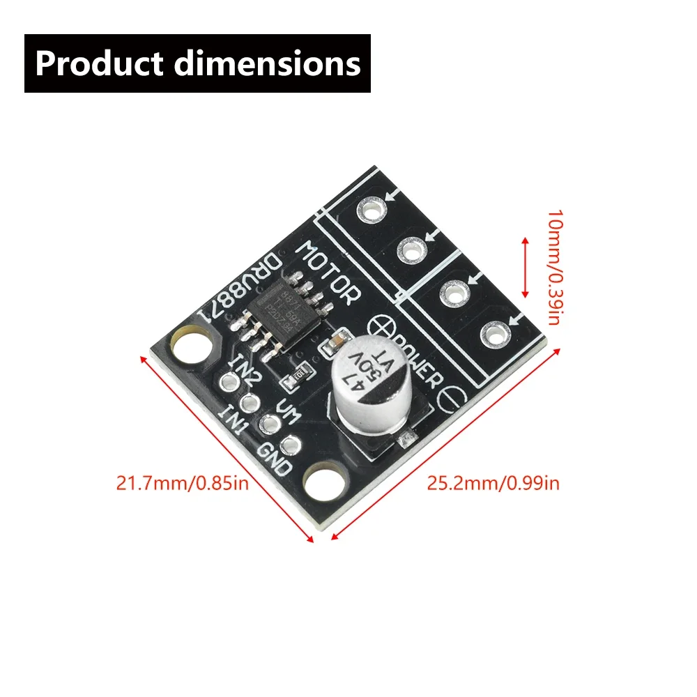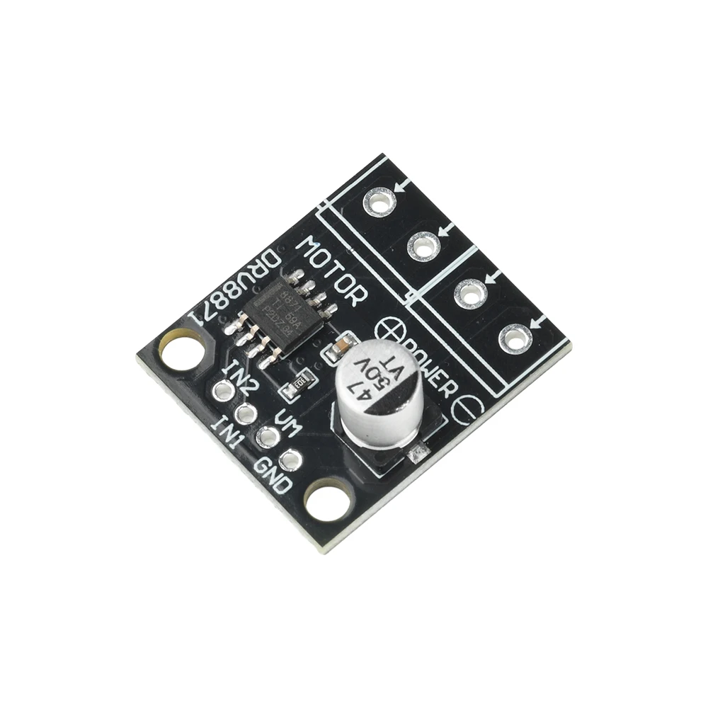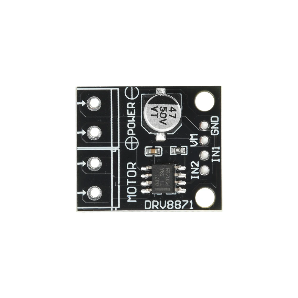Experience precise control with this sleek DRV8871 DC motor driver module, designed for smooth operation and reliability. Its compact 25.2mm x 21.7mm size blends seamlessly into your project, providing efficient PWM speed regulation across a broad voltage range of 6.5V to 45V. The module boasts a robust 3.6A peak current capacity with a default setting of 2A, ensuring powerful performance for various applications like robots, industrial equipment, and automation systems. Featuring a modern, minimalist black PCB adorned with crisp white labels, it offers a clean, organized aesthetic. The built-in protections—overcurrent, short-circuit, undervoltage, overheat—bring peace of mind during operation. Whether you're a hobbyist or a professional, this module is your go-to choice for reliable motor control.
