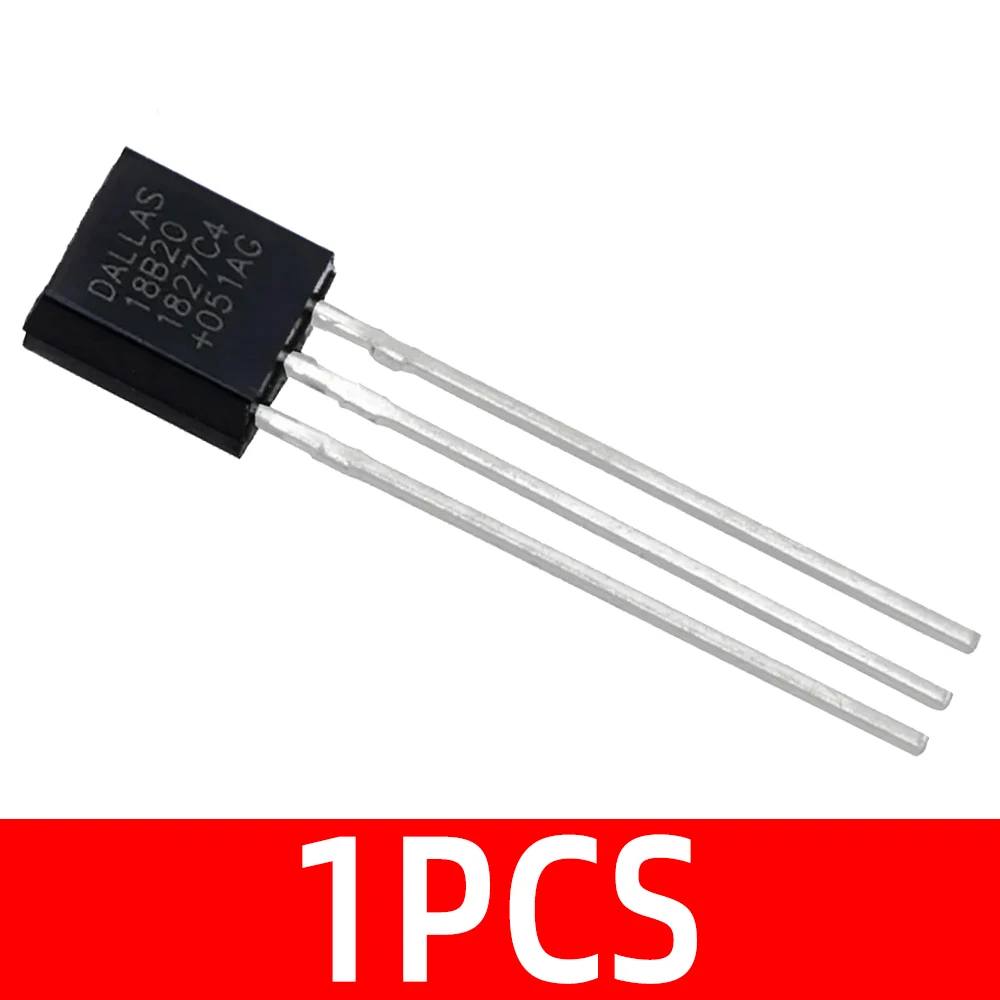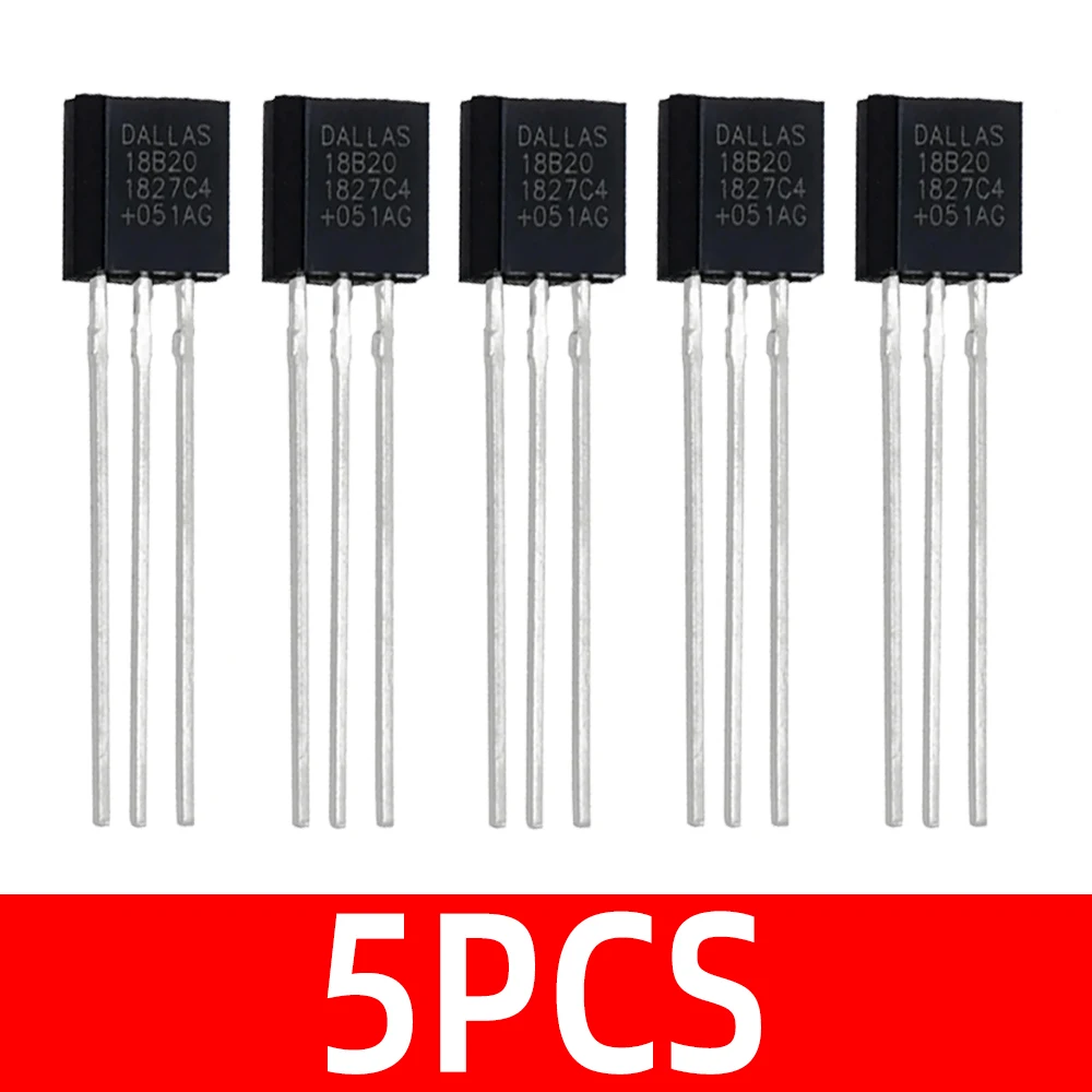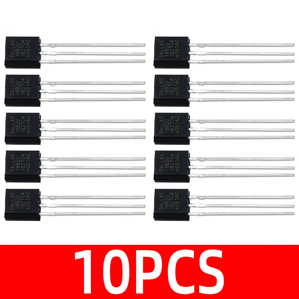 This set of DS18B20 temperature sensor ICs in TO-92 package offers reliable, precise temperature measurement for various electronic projects. Available in lots of 1, 5, or 10 pieces, each sensor features a sleek, black plastic housing with three straight metallic leads for easy installation. Designed as switching transducers with a metal shell for durability, these customizable sensors are ideal for DIY enthusiasts seeking high-quality components for temperature monitoring applications. The crisp white and gray markings on the surface denote the model number and specifications, ensuring accurate identification and seamless integration into your circuit designs, enhancing the performance and reliability of your electronic creations.