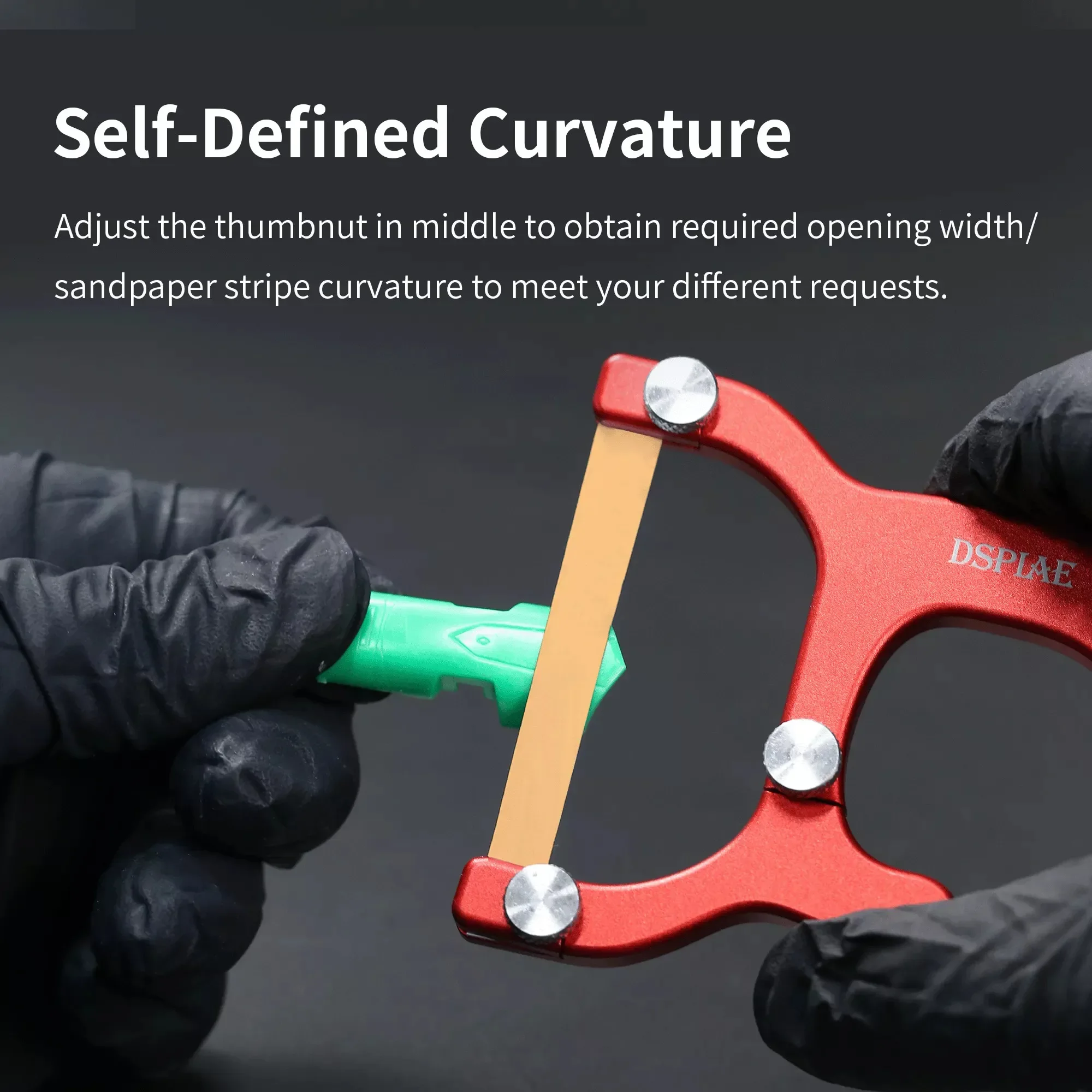 Experience precise control with the DSPIAE AT-CSS Cylindrical Surface Sander, designed for advanced model making and detailed hobby projects. Crafted with a durable, lightweight metal frame finished in vibrant red with a matte or anodized texture, it features a T-shaped design for stability and ease of use. The tool is equipped with silver-colored, knurled knobs for precise adjustments and manipulation of the cylindrical sanding stick, ideal for assembling and retrofitting Gundam kits. Its ergonomic, professional appearance combines sleek contours with metallic accents, ensuring comfort and accuracy during detailed finishing work on cylindrical surfaces, making it an essential tool for dedicated hobbyists and model enthusiasts alike.