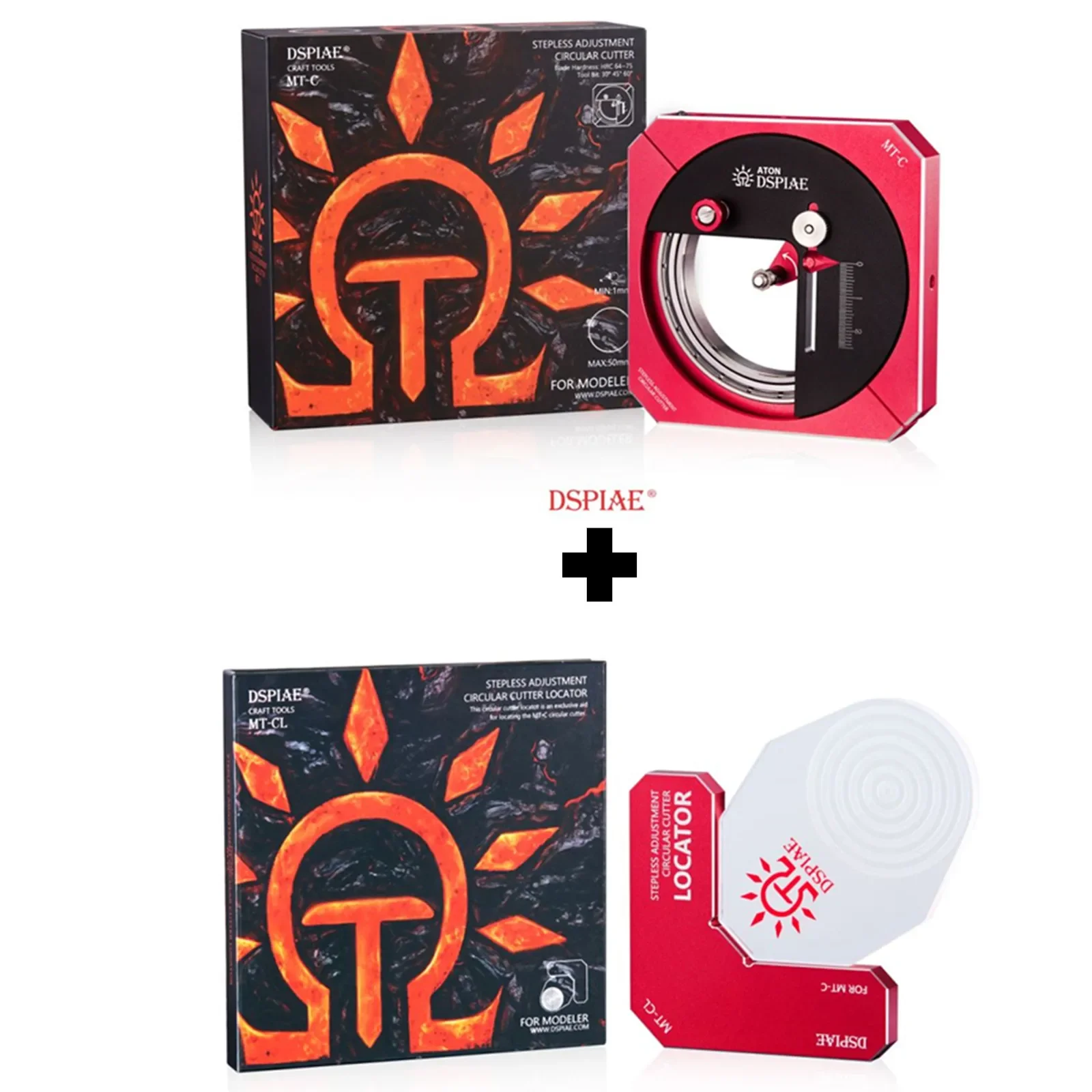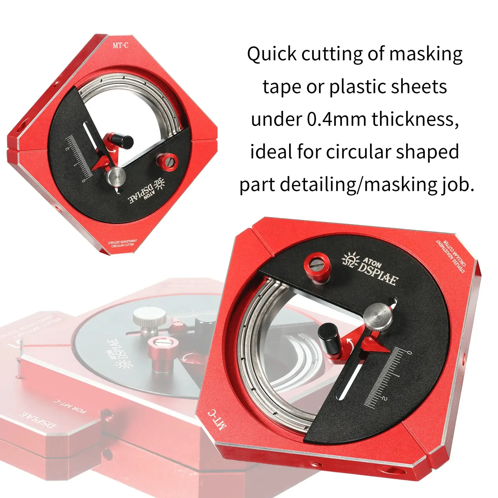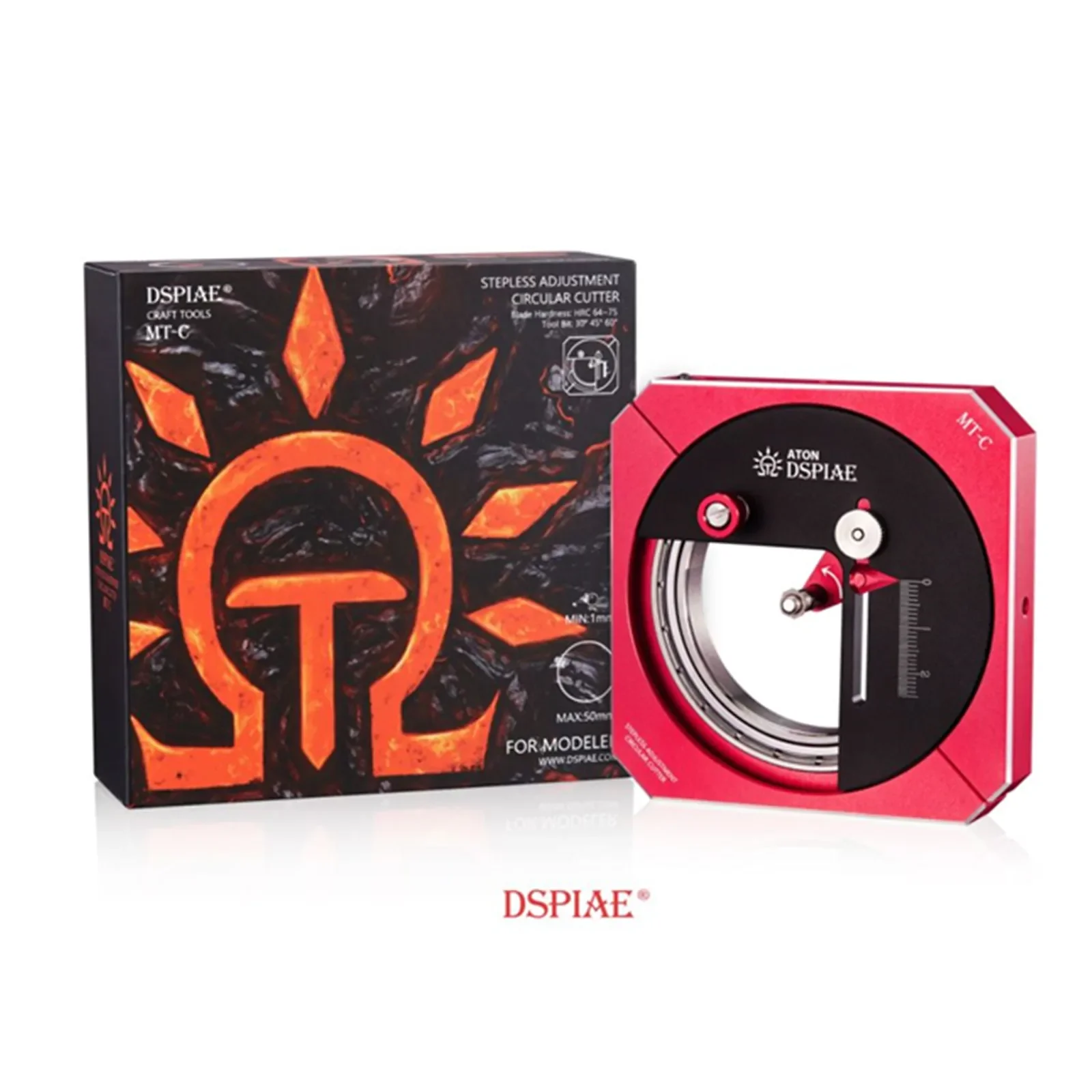 Experience precision with this versatile DSPIAE MT-C MT-CL Circular Cutter Model Assembly Tool, designed for hobbyists and craft enthusiasts. Its sleek, modern exterior in vivid red matte finish offers an ergonomic and professional look. The circular top dial with graduated markings allows for highly accurate radius adjustments, while the small pointed red adjustment knob provides stepless, fine-tuned control. Adjacent metallic knurled silver knob ensures secure settings. This compact, square-shaped device integrates seamlessly into your workspace, with modular accessories like a red angle locator and protective circular guard to support precise, customizable cuts. Invest in this durable, high-quality tooling for your next creative project and achieve flawless results every time.