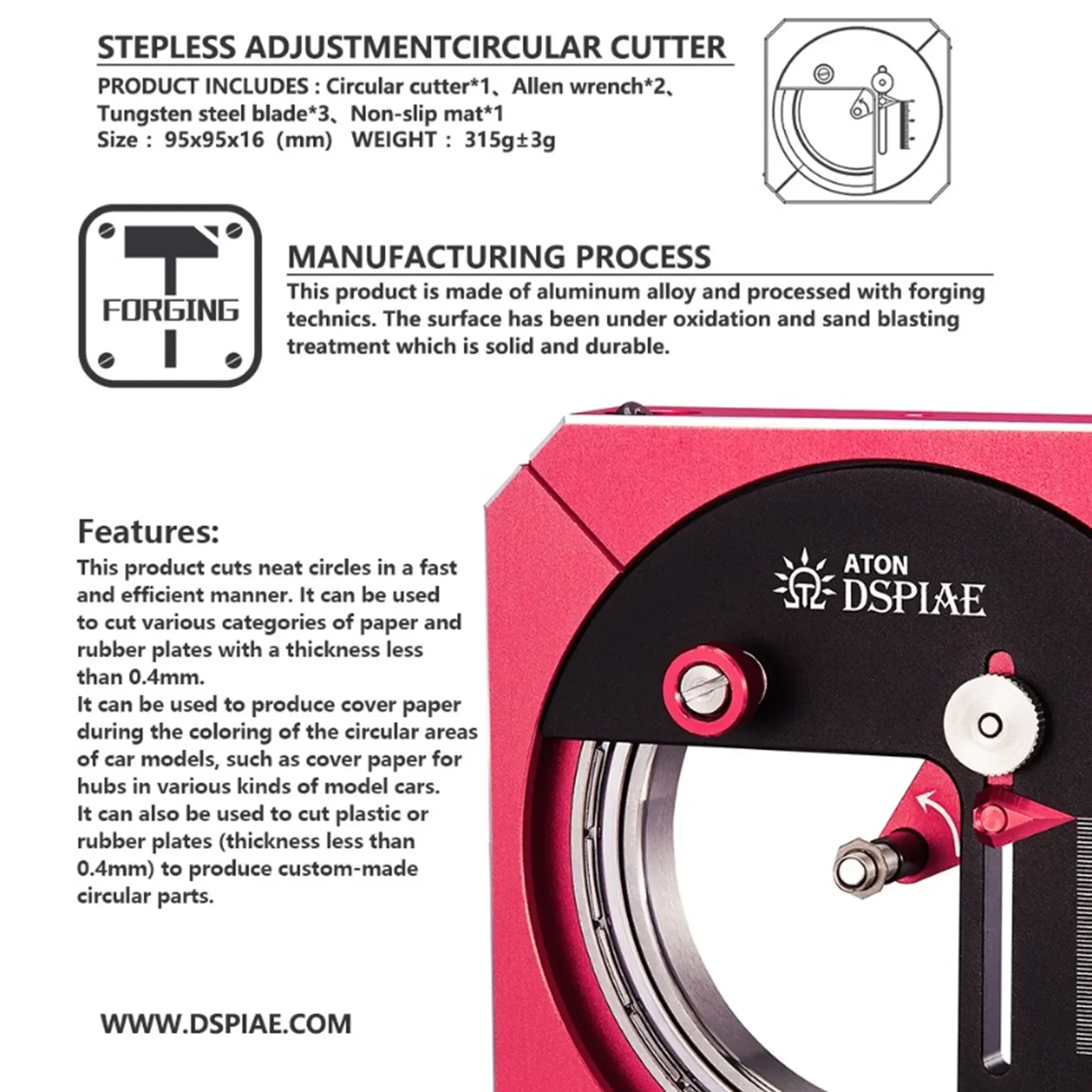 - This stepless adjustment circular cutter boasts a compact, square design finished in vivid red matte, combining aesthetics and functionality ideal for precise hobby and craft cutting tasks.