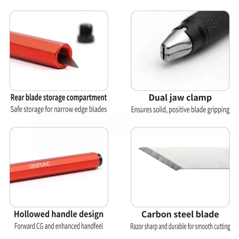 Experience precision like never before with the DSPIAE Precision Hobby Set. This set features two sophisticated tools, the AT-DK01 and AT-DK02, crafted for accuracy in model making and intricate carving. The ergonomic design combines high-grade metal with lightweight, anodized aluminum alloy casings, providing a sleek appearance and reliable durability. Enjoy optimal control with the textured matte black grips that prevent slipping during use. The set includes interchangeable blades—DK-B01 and DK-B02—tailored for various cutting applications. Elevate your craftsmanship with tools designed for professional results, whether you are a seasoned expert or an avid hobbyist.