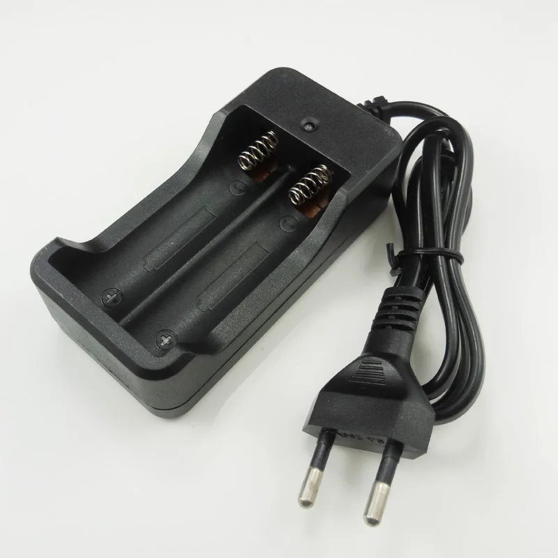 Experience safe and efficient charging with this sleek black dual-slot lithium battery charger, compatible with 18650 batteries measuring 66mm x 18mm and other rechargeable lithium-ion variants such as RCR123, 14500, 16340, 17335, 17500, 17670, and 18500, with output voltages of 3.6V/3.7V. It features an EU plug for 220V power, supporting input voltages of AC 100-240V and delivering an output of DC 4.2V at 1A. The charger automatically stops when fully charged, indicated by red and green LED lights, ensuring safety and quick turnaround. Its minimalist black design offers a practical, modern look for your battery charging needs.