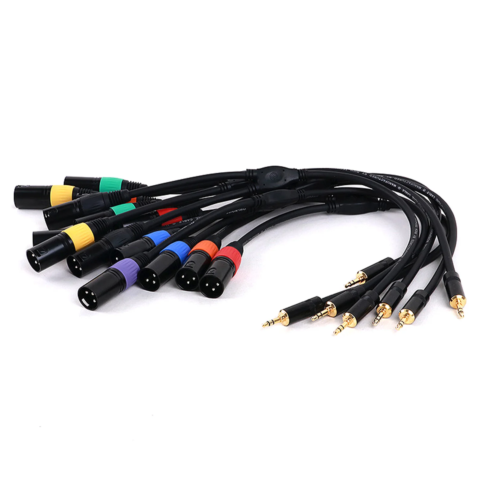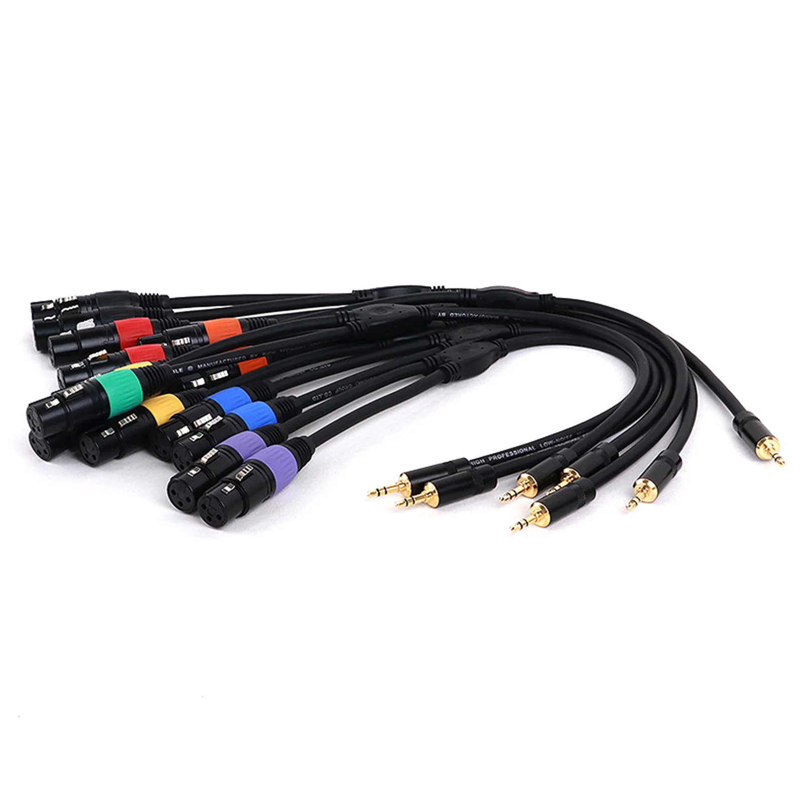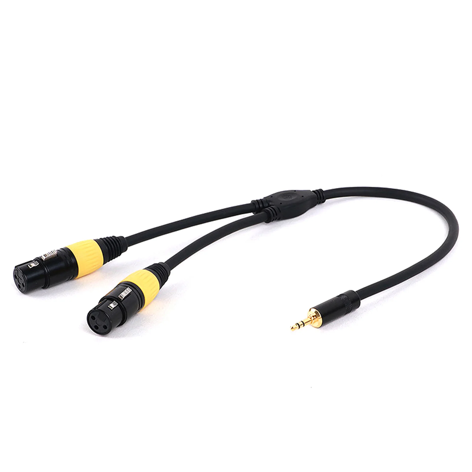 Experience premium audio quality with this versatile Y-splitter cable, designed for professional and enthusiast audio setups. Its sleek black rubber outer jacket ensures flexibility and durability, making it easy to handle during live performances or studio recordings. The straight 3.5mm stereo male jack features a polished metallic tip, providing a clean, modern appearance and reliable connection. The dual XLR connectors—either both male or both female—are constructed with robust metal bodies, threaded locks, and gold-plated contacts, ensuring excellent signal transfer and secure connections. Available in multiple vibrant colors such as purple, red, yellow, blue, green, orange, and black, it seamlessly blends style with function. Ideal for microphone setups, mixers, DVD players, amplifiers, and professional audio equipment, this cable delivers clarity, durability, and aesthetic appeal for all your sound needs.