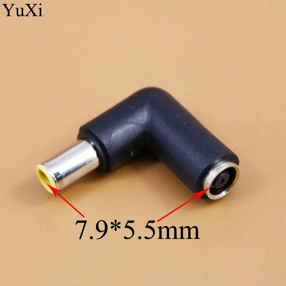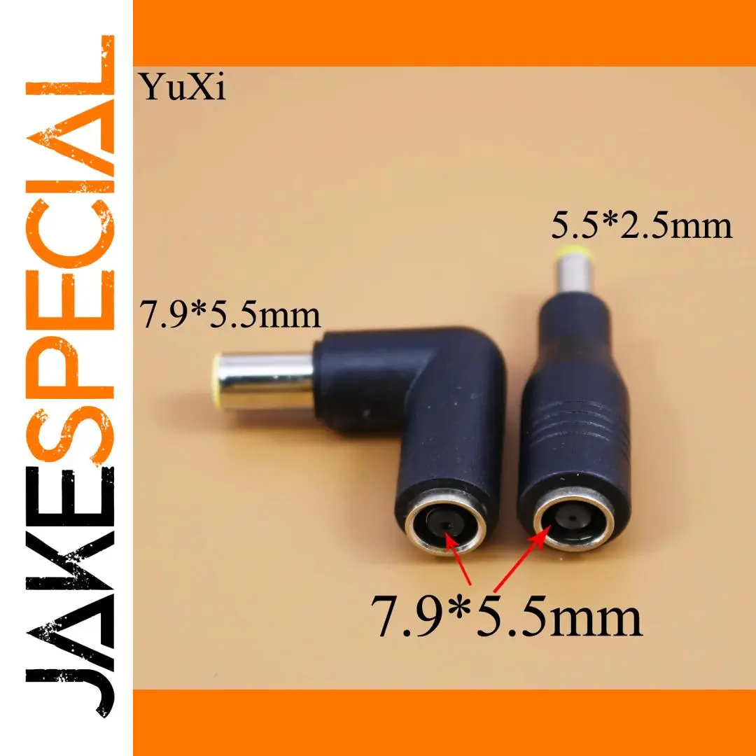 Experience seamless charging with this high-quality DC power connector adapter designed for laptop users. Crafted with a sleek, matte black finish, the connectors feature a modern, understated aesthetic that blends effortlessly with professional setups. The 90-degree angled design ensures comfortable, ergonomic connections, reducing cable strain and offering a cleaner workspace. With precise size markings of 7.9×5.5mm and 5.5×2.5mm, this adapter guarantees compatibility with various laptop models, including ThinkPad. The metal tips, polished and shiny, contrast stylishly against the matte housing, with bright yellow rings indicating accurate shape and insulation. Its durable construction promises dependable performance, making it an essential spare part for maintaining your device's power supply.