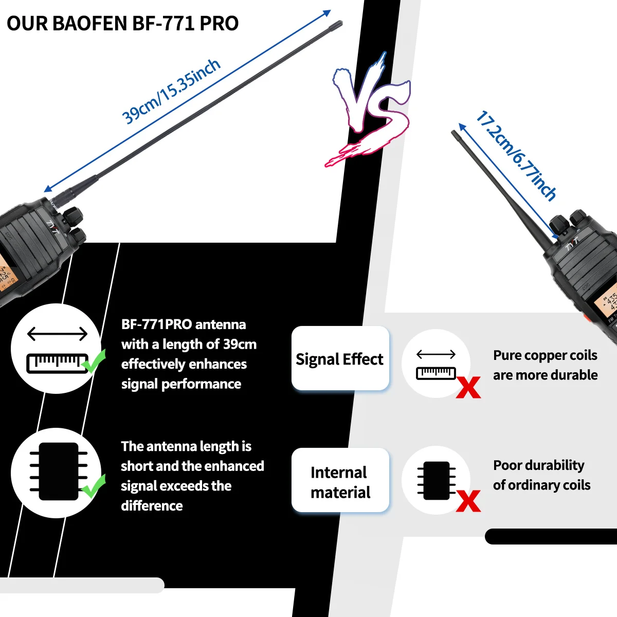 - Dual-band frequency range 136-174 MHz and 400-520 MHz for versatile communication across various devices and environments.