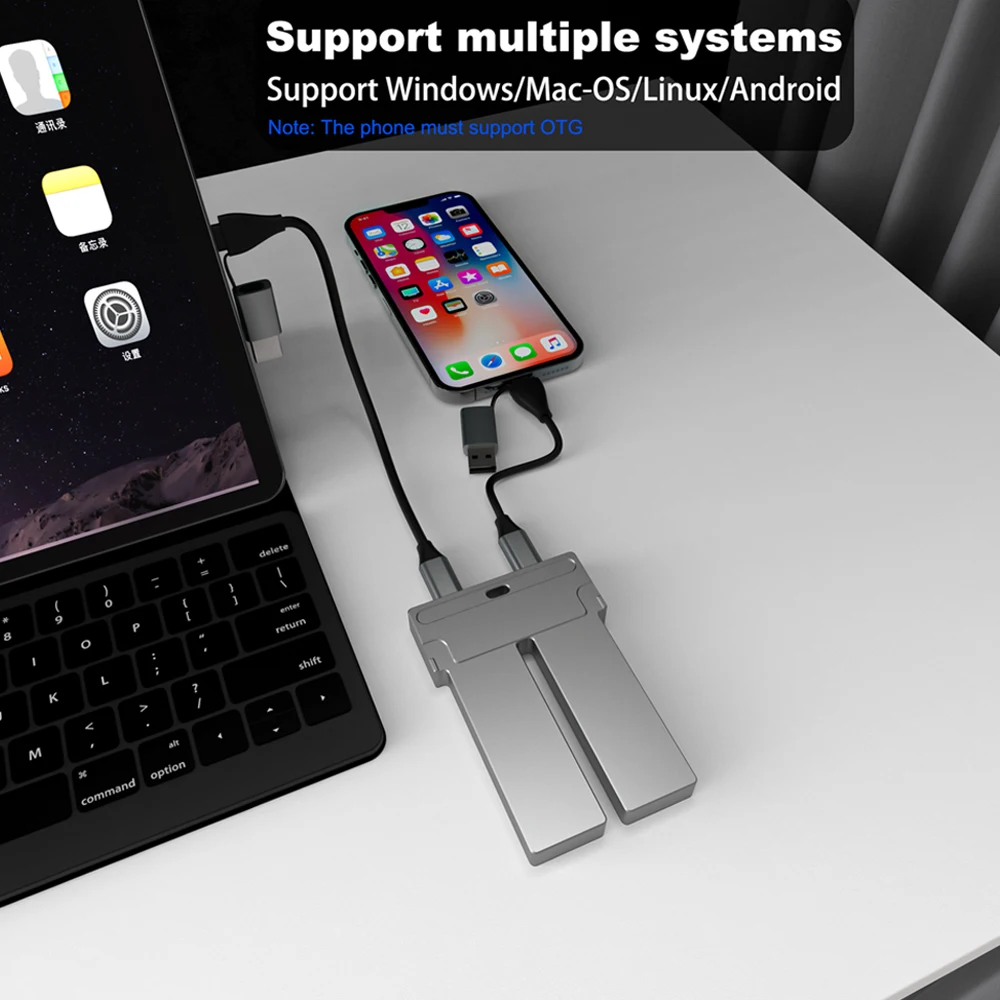 Imagine transforming your data management with ease using this modern dual bay M.2 SSD enclosure. Crafted from durable aluminum alloy, it features a minimalist rectangular design with a matte or subtly glossy surface, emphasizing clean lines and textured accents around the tool-free sliding trays. Its built-in metal heat dissipation pad ensures your SSDs stay cool, boosting performance by 20%. The device connects effortlessly via USB 3.2 Gen 2 Type-C with a transfer rate up to 10Gbps, allowing rapid data transfer at a theoretical maximum of 1200MB/s. Compatible with Windows, Mac OS, and Linux, it supports both NVMe PCIe M.2 (M key/B key) and SATA (NGFF) SSDs up to 8TB, making it an ideal solution for high-speed backups and large data handling.
